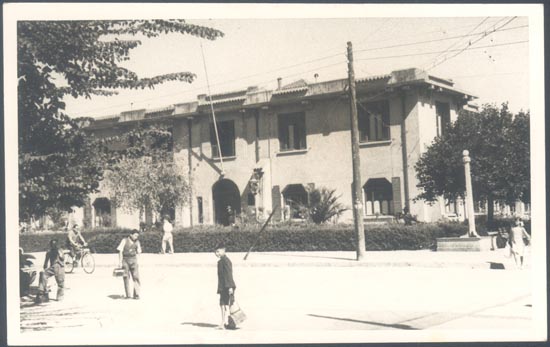 Vista de una avenida muy transitada, donde destaca la fachada de un gran edificio alargado, con una estatua de un Cristo en su punto más alto y central.