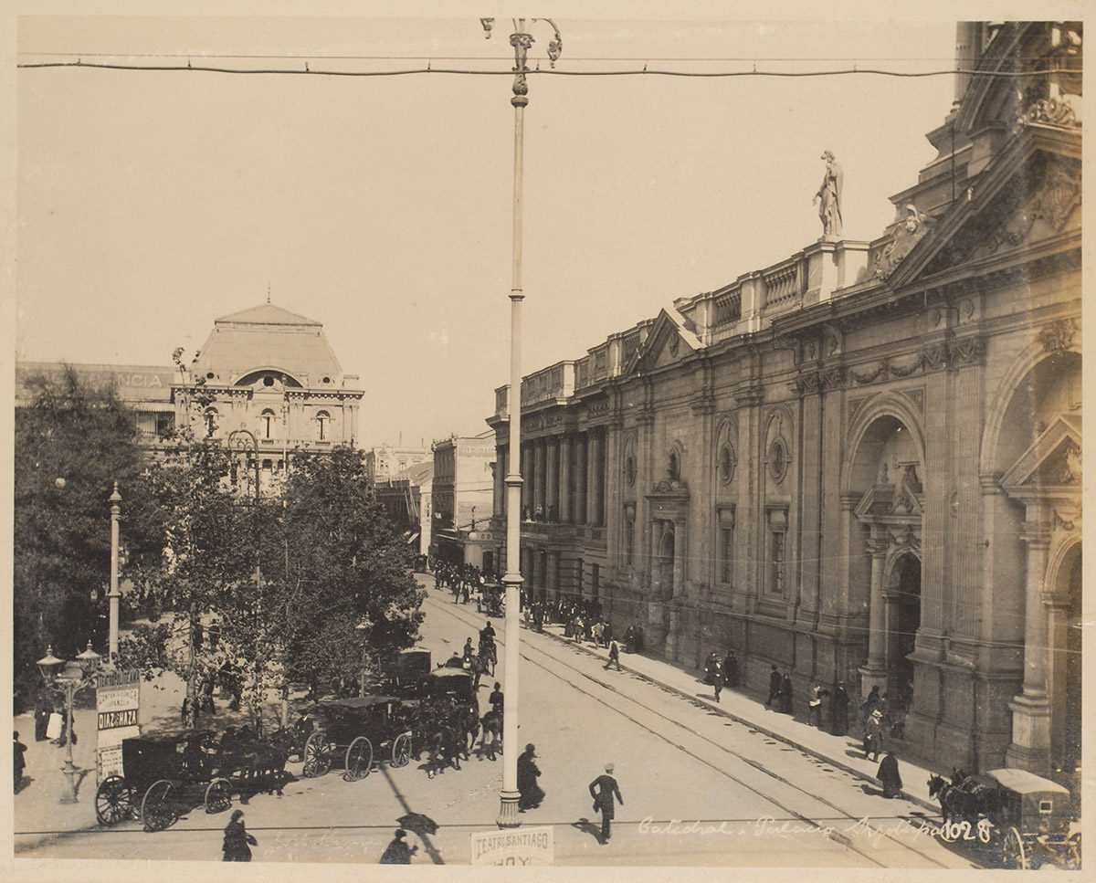 Vista Panorámica de una ciudad, donde se divisan una gran variedad de distintos de edificios. De fondo destaca un gran cerro cercano a la ciudad, como otros que se encuentran más lejos.