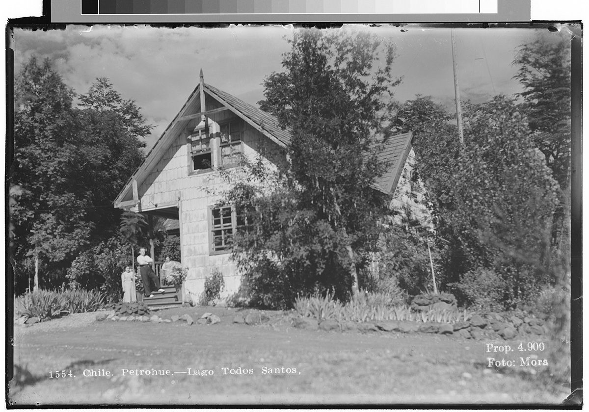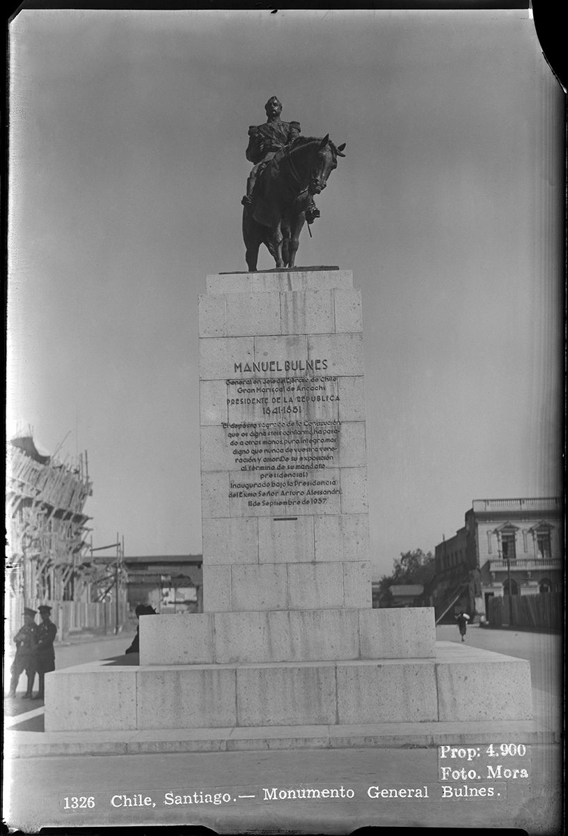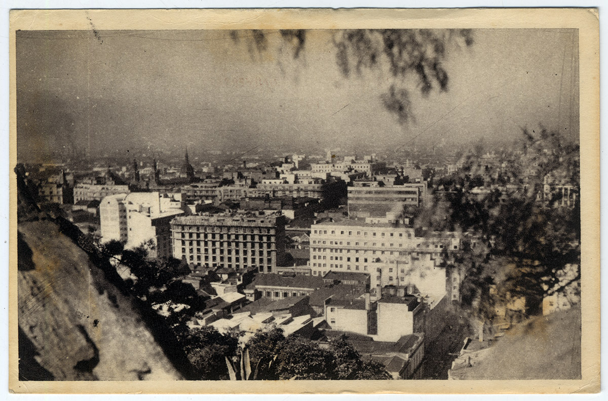 Vista de conjunto de edificios y parte de una plaza. De fondo destaca una cordillera nevada.