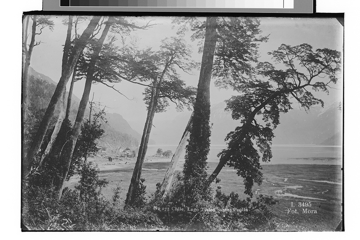 Vista vertical Rio , poza que en el costado izquierdo una gran roca y un árbol grande. De fondo la cordillera