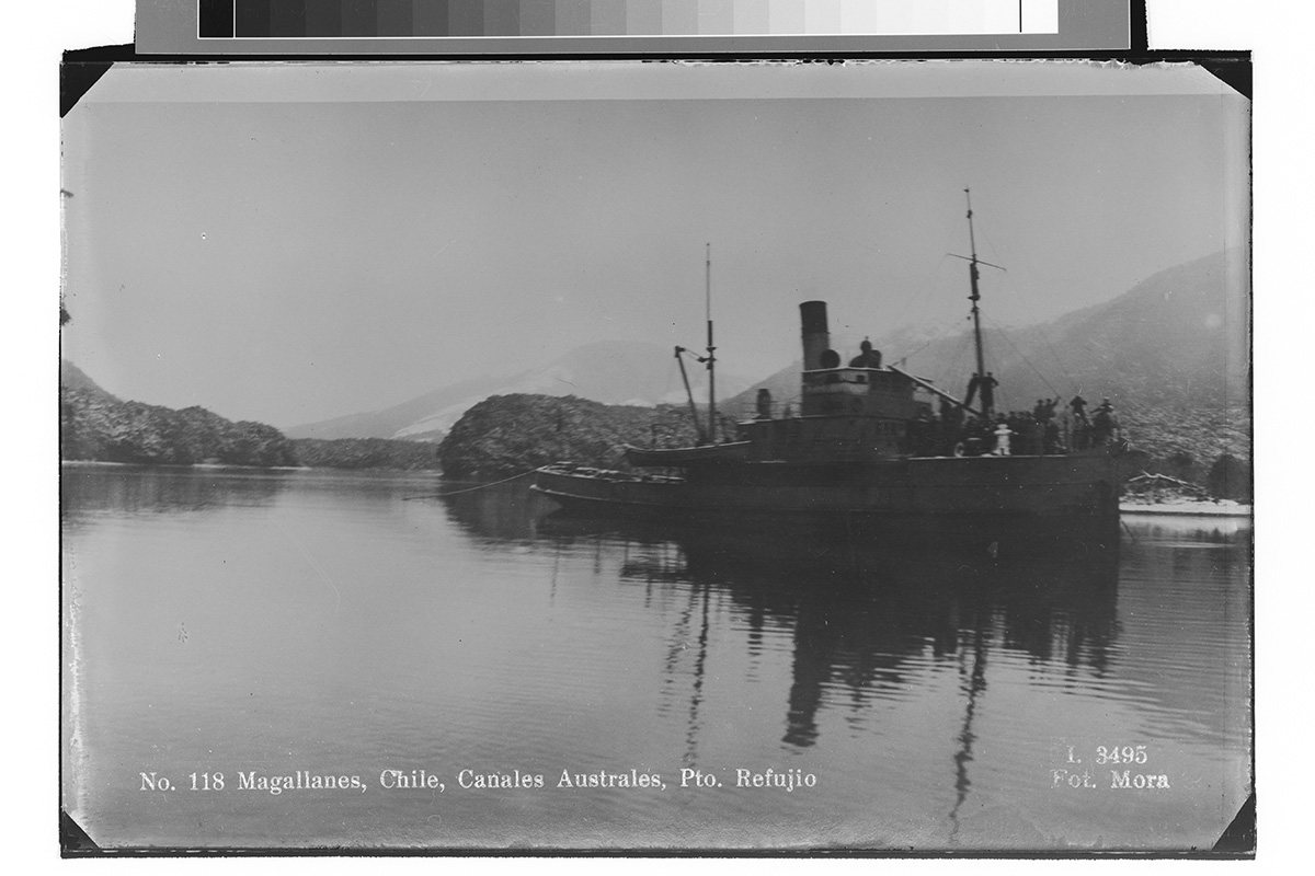 Vista desde el mar hacia un puerto. Se divisan barcos y a lo lejos edificios y cerros de la ciudad.