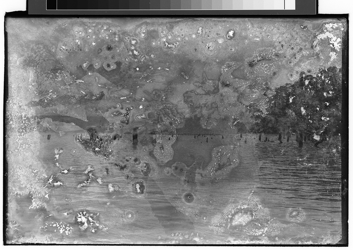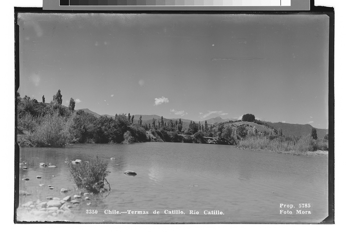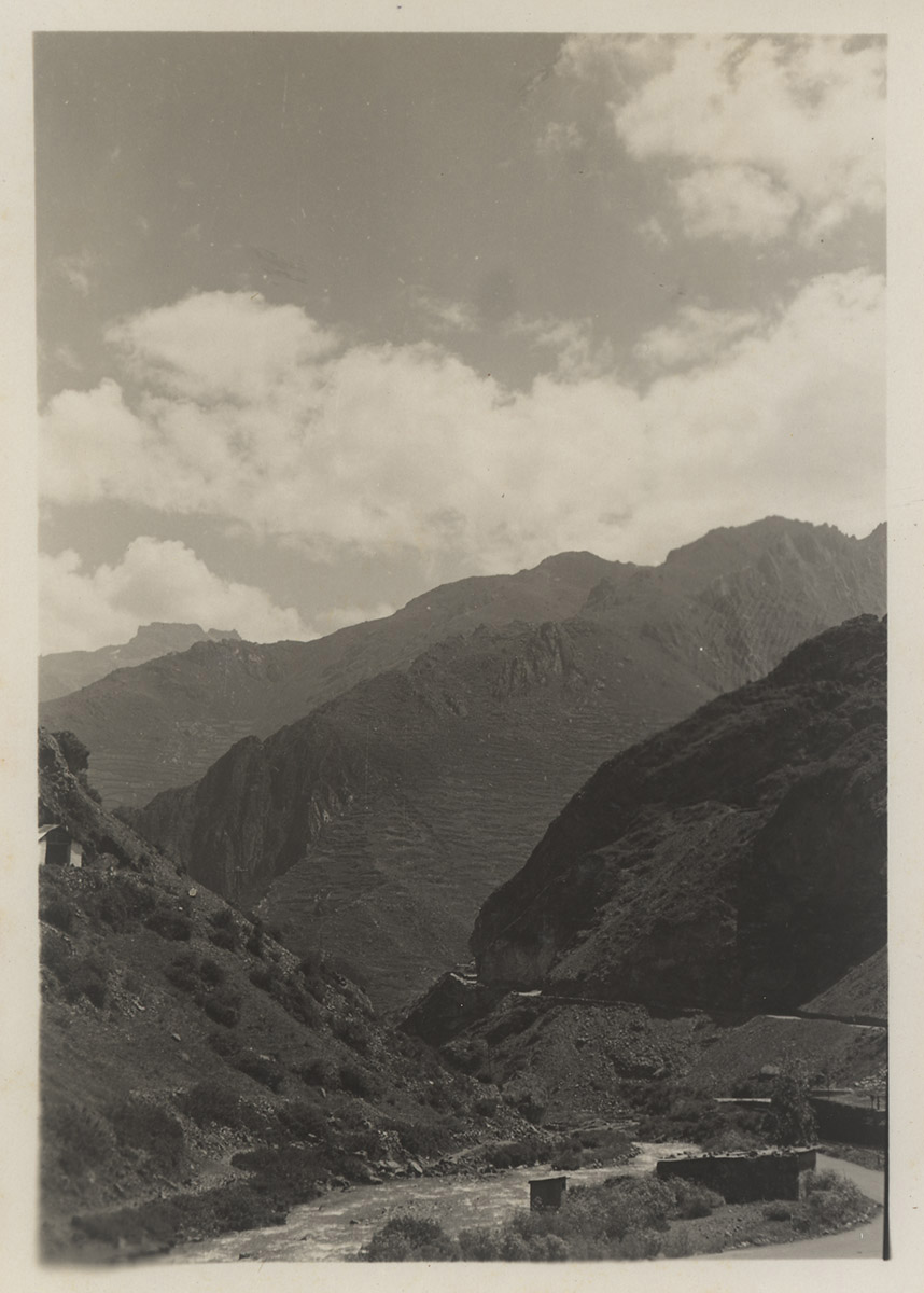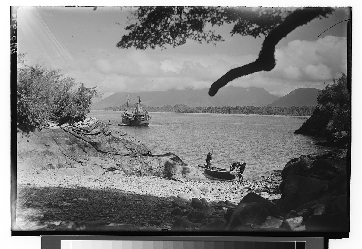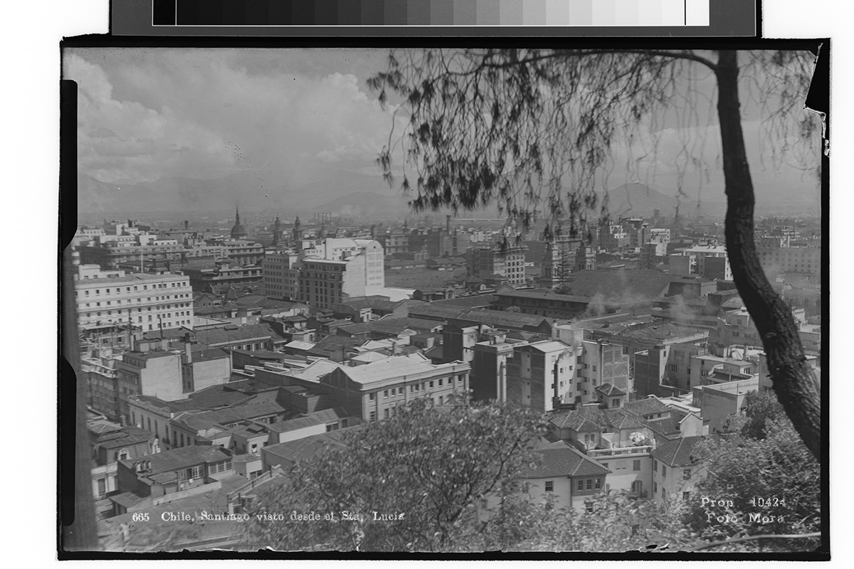 Vista Panorámica de una ciudad cerca de la orilla de un lago. Destacan unas construcciones pequeñas con techo de lado que se encuentran en filas.