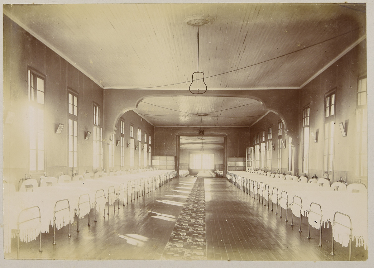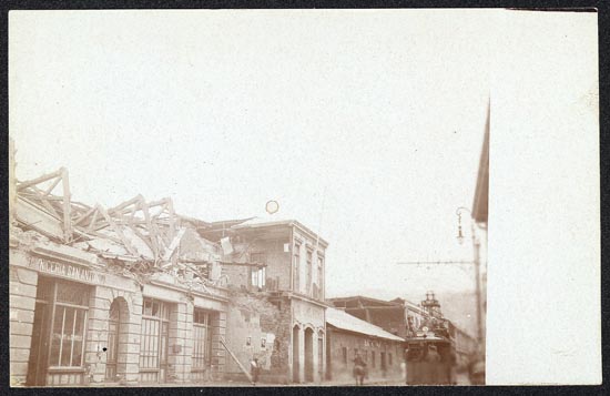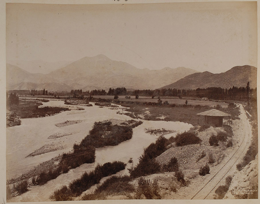 Vista de unos caminos bordeados por árboles, además se ve una construcción de dos pisos.