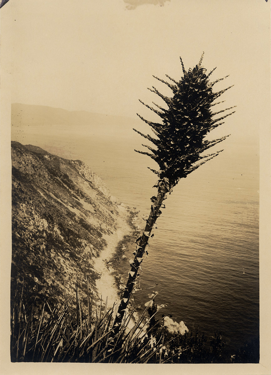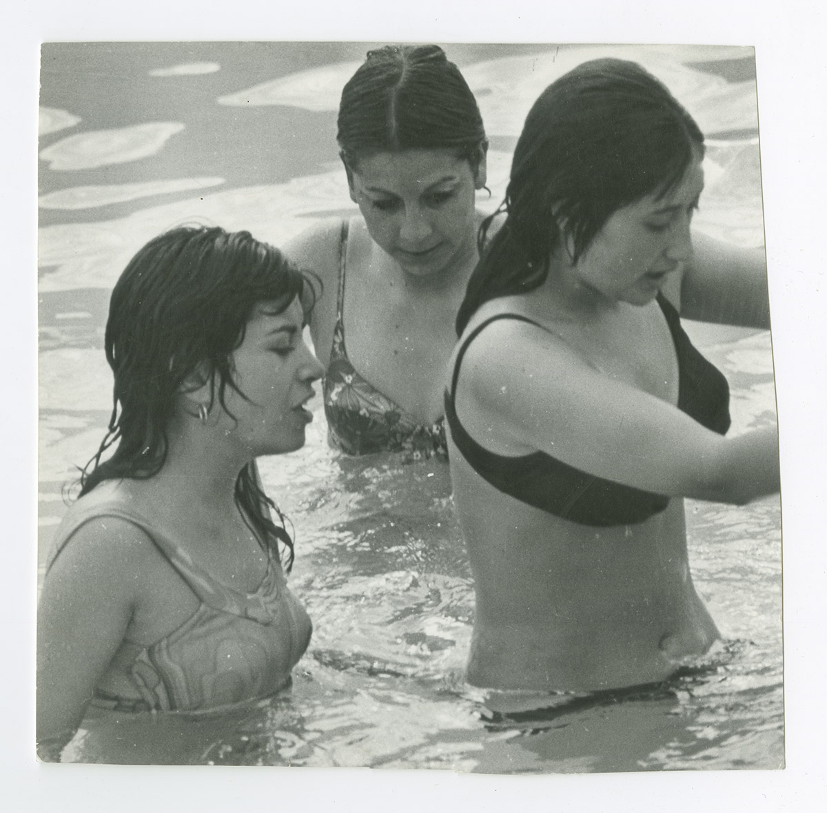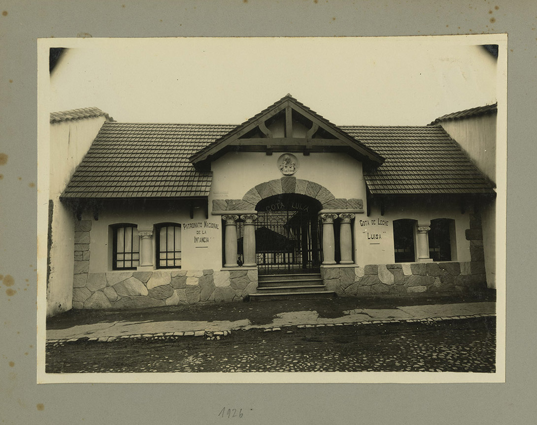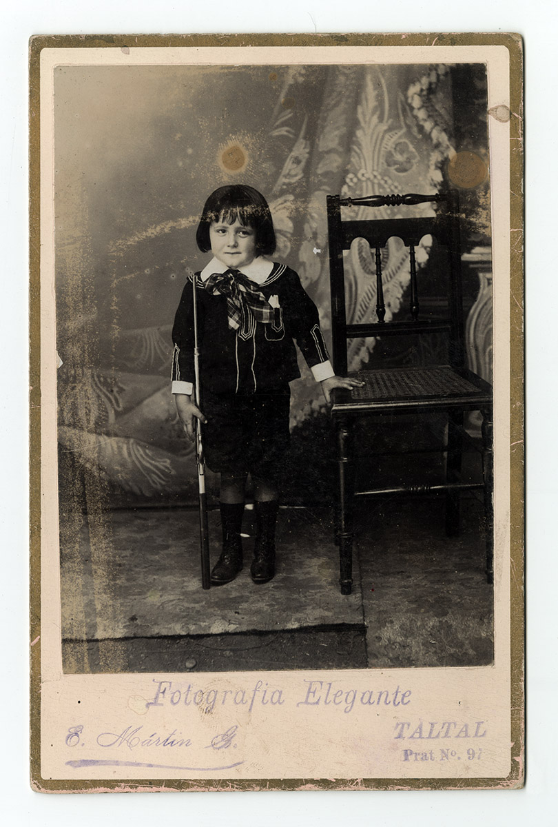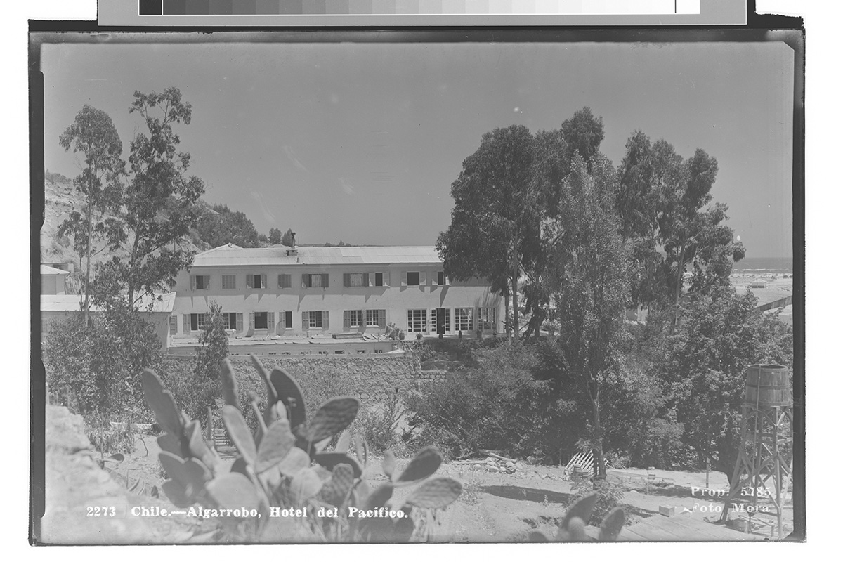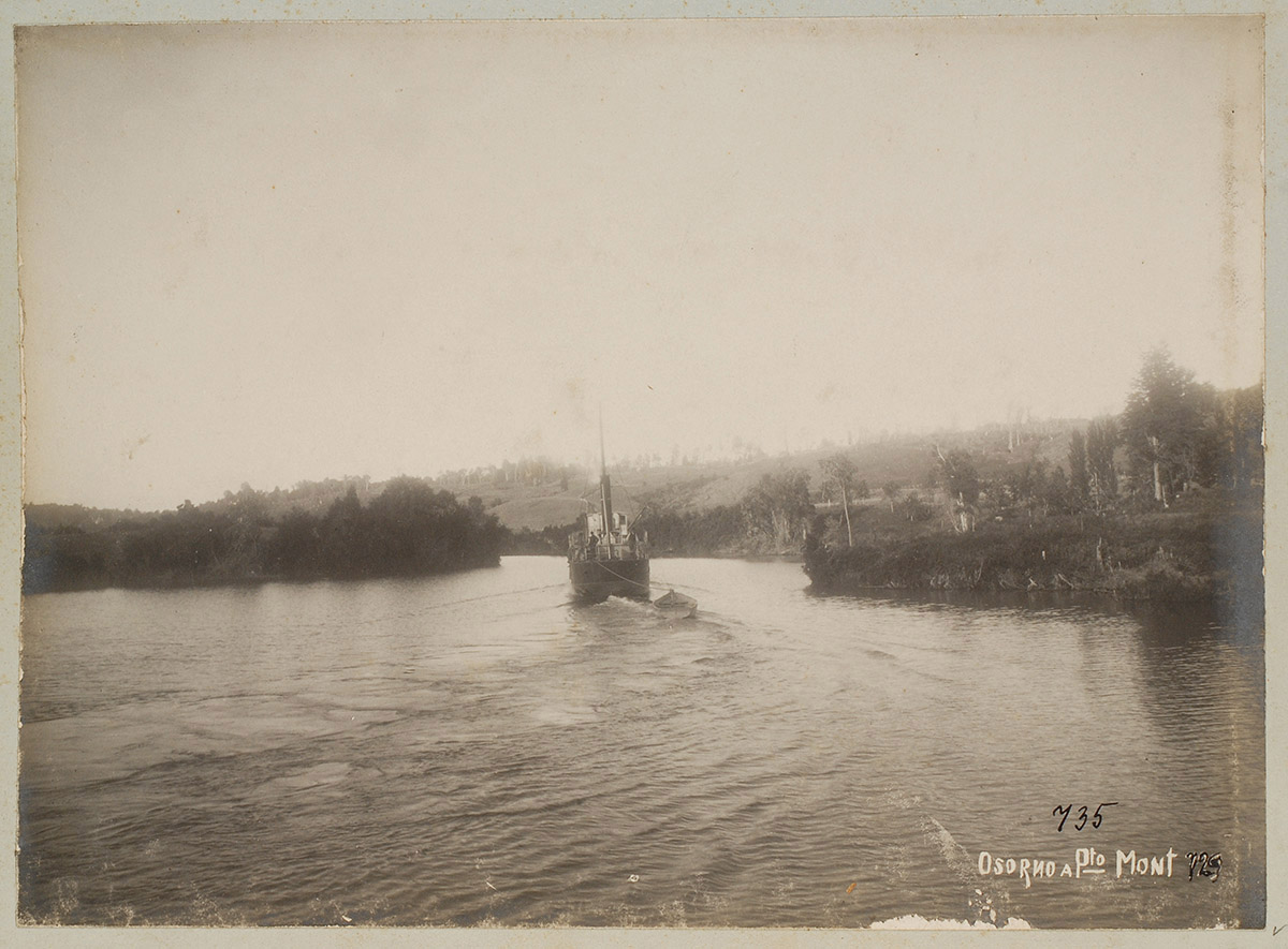 Vista de unas casas de pajas cerca de un río. Un hombre con los brazos cruzados está parado al lado de las casas.