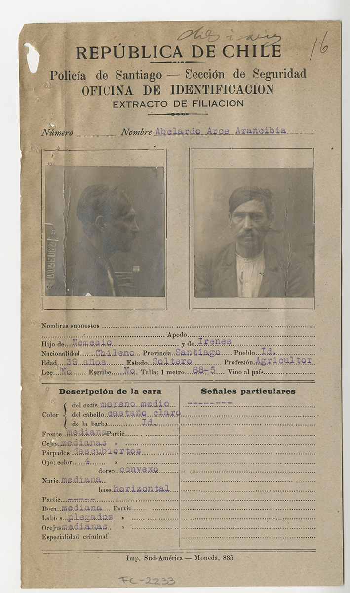 Documento donde figuran los antecedentes policiales y penales del imputado, detenido por ebriedad, sospechas y faltar a la autoridad.