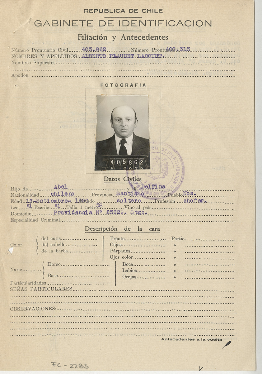 Documento donde figuran los antecedentes policiales y penales del imputado, condenado por Ebriedad.