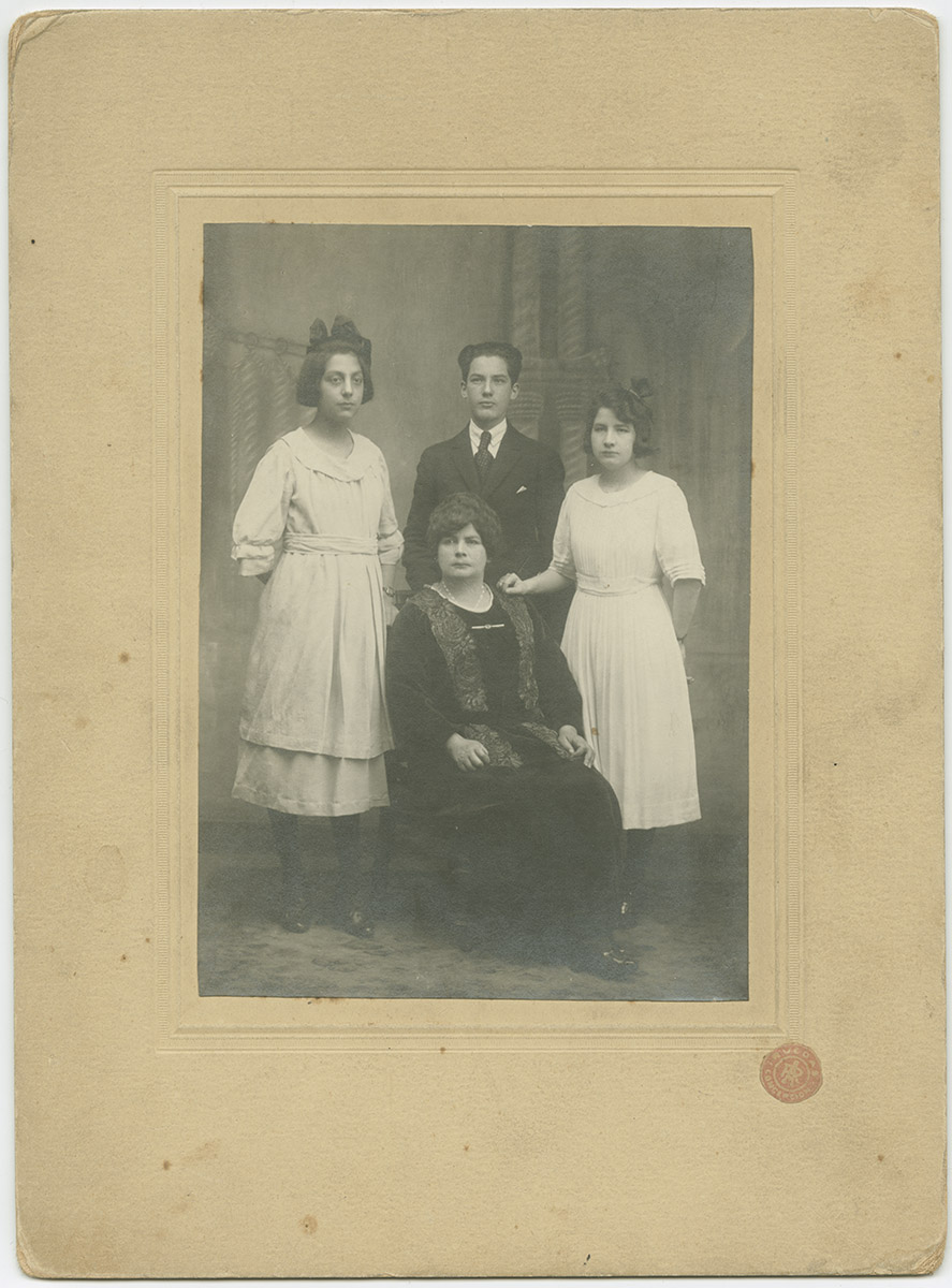 Un grupo de personas compuesto está sentada alrededor de una mesa de restaurante tomando el té. Sobre la mesa, están puestos las tasas y los platos.