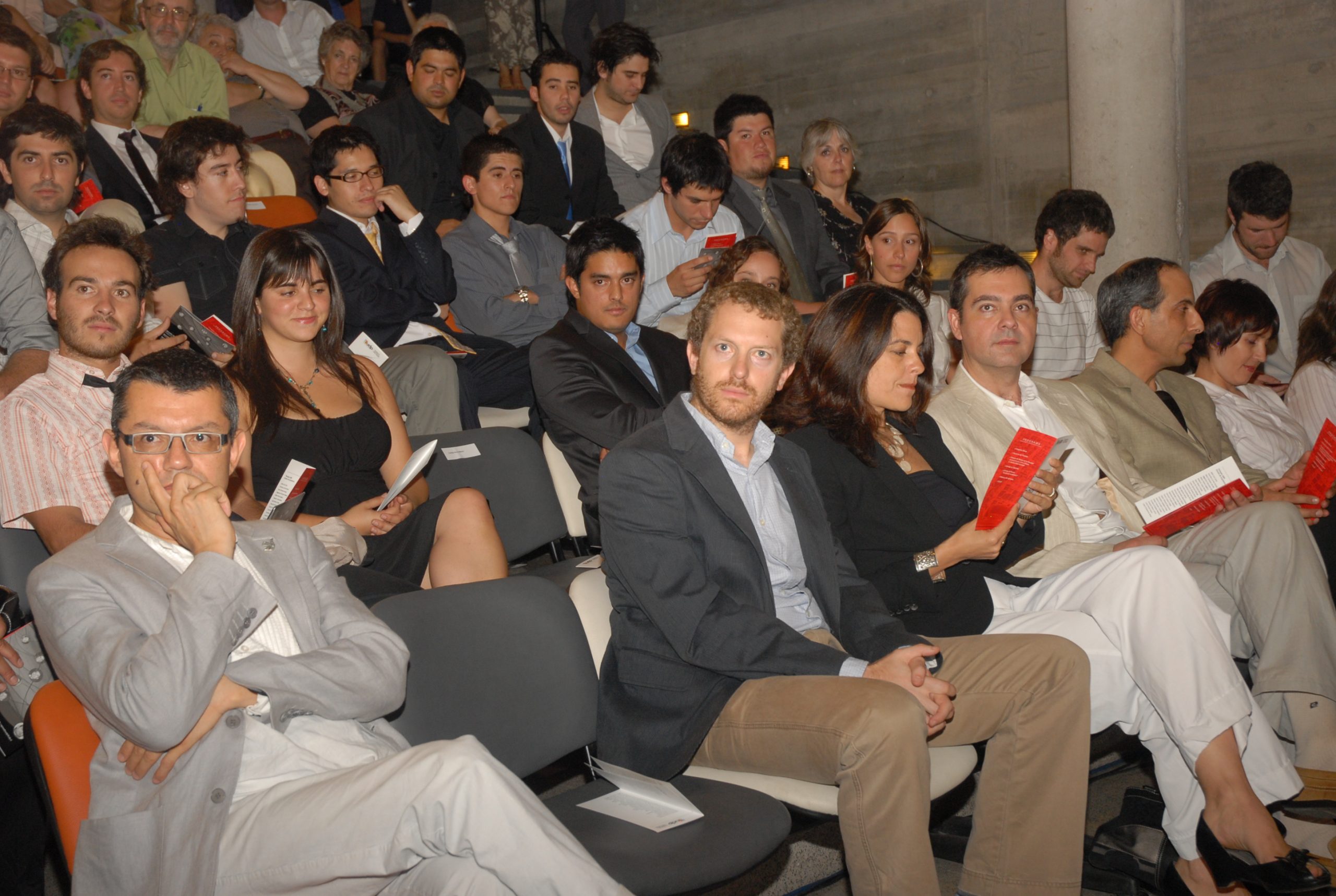 Retrato de grupo de varias personas reunidas en una sola fila de pie.