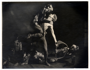 Grupo compuesto de cuatro mujeres y un hombre. Se encuentran sentados y apoyados sobre la estructura de un pozo. Alrededor hay jardines.