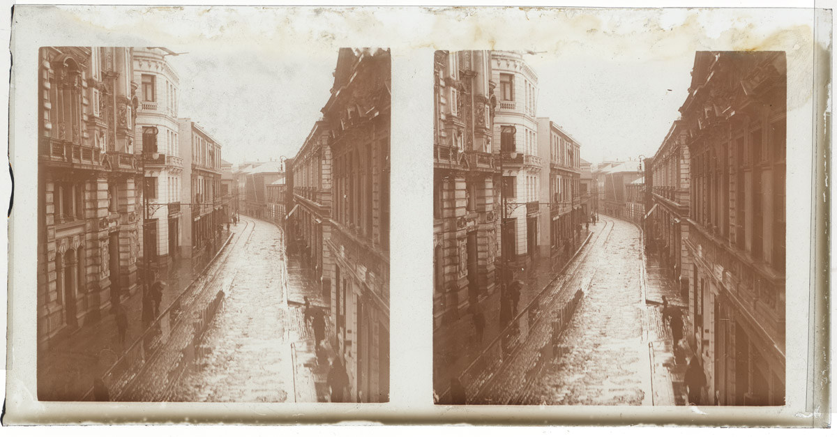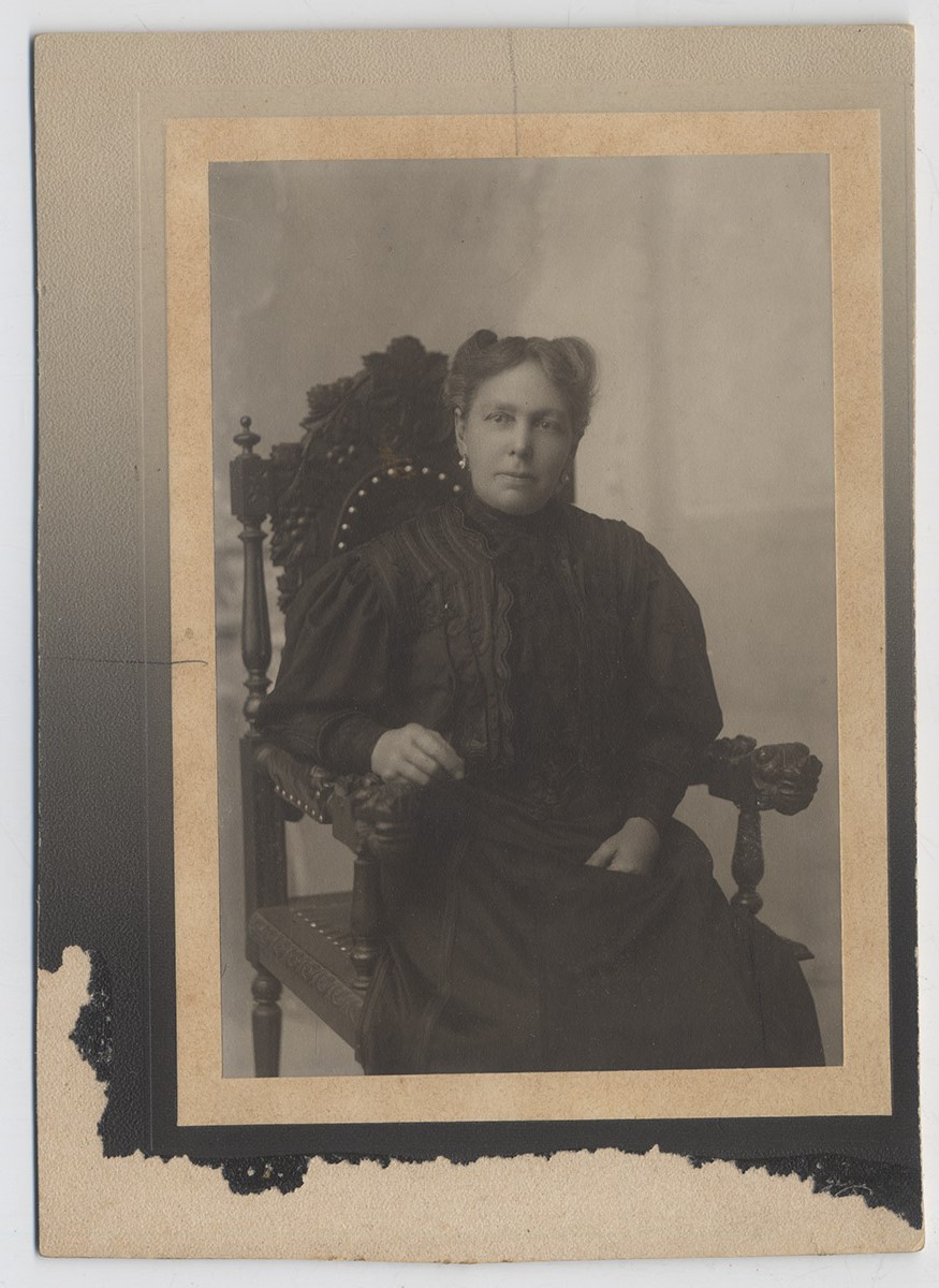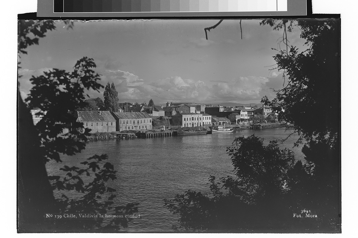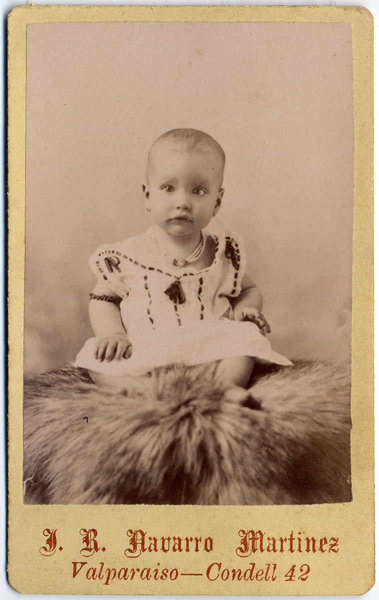 Retrato de un hombre con lentes, terno, sombrero y bastón en la mano, que se encuentra sentado sobre la playa junto a dos niños que se encuentran a su lado. En segundo plano, se ven carpas de playa.