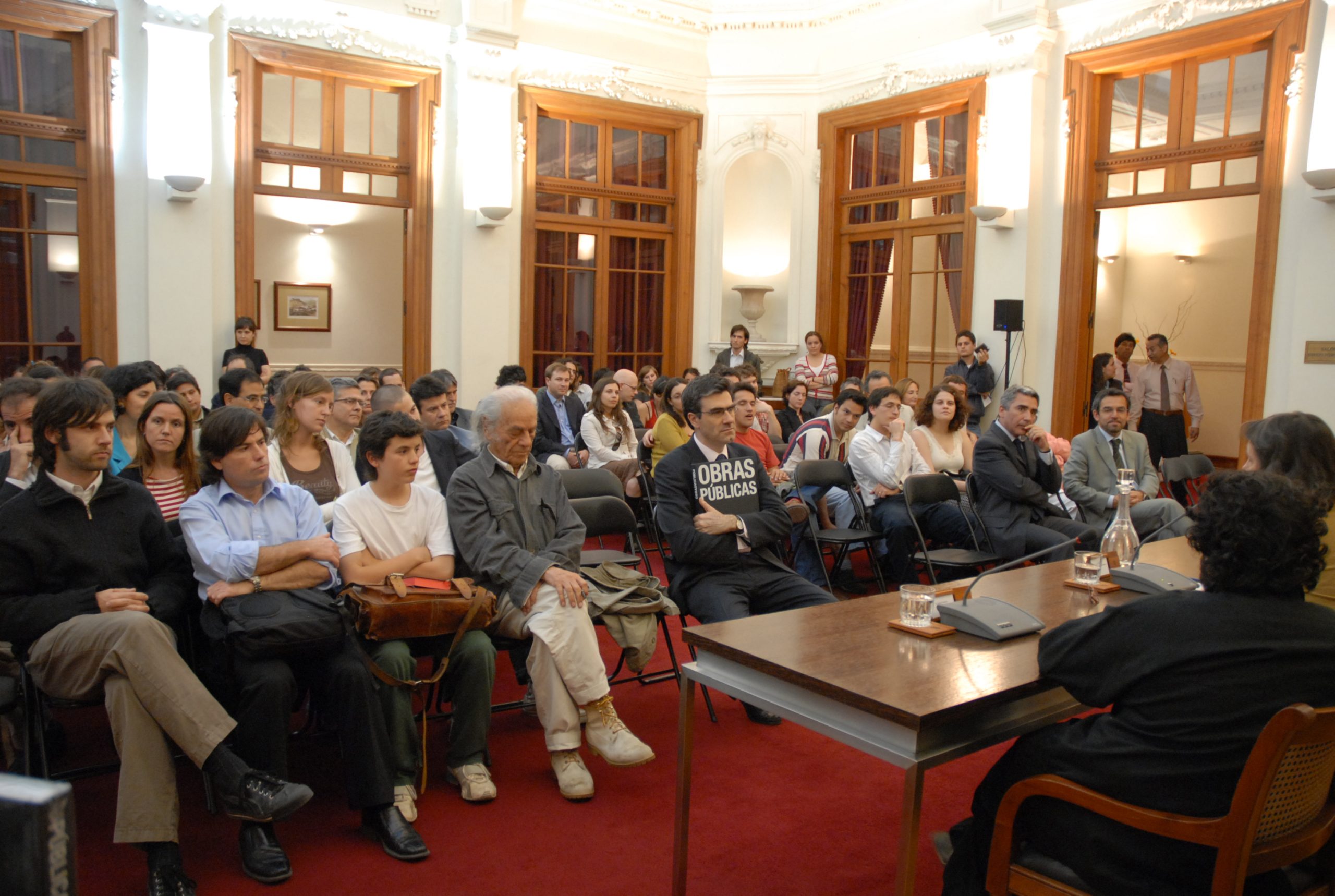 Se muestra un edificio emplazado en la altura cordillerana. El entorno es de escasa vegetación y de fondo se ven montañas nevadas.