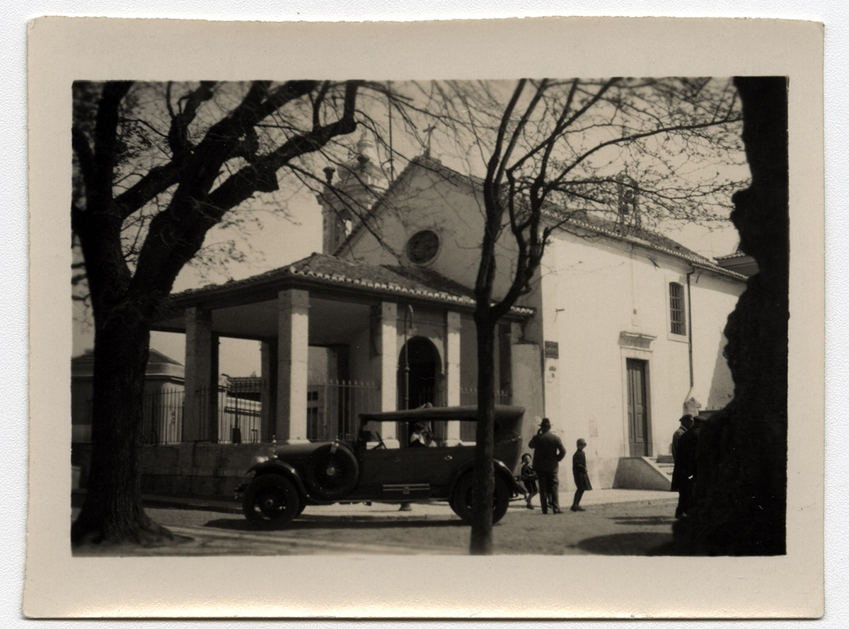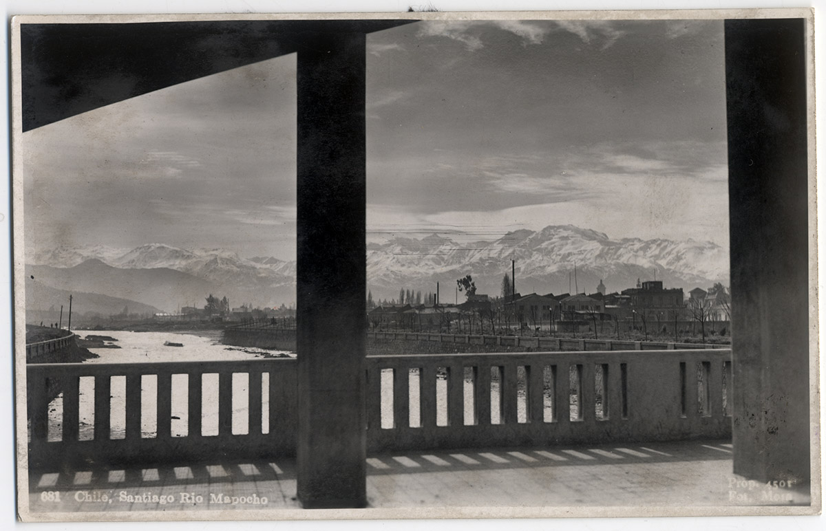 Grupo de hombres a caballos posando delante una casa de piedra, en el frente se ve un letrero que dice “Hotel Portillo”.