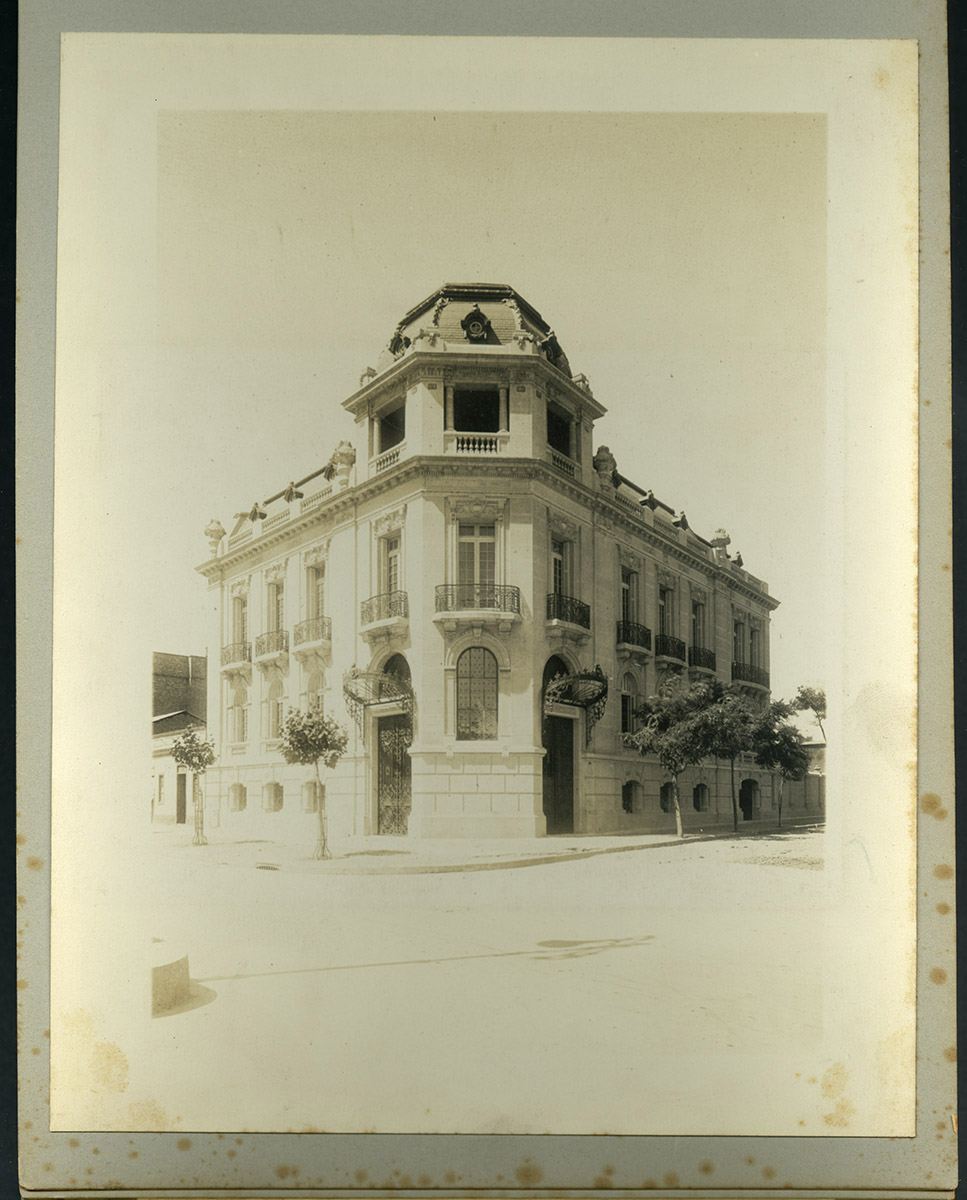 Niña con vestido y velo blancos está apoyada sobre una estatua de la Virgen María. Se ve un ramo de flores a su lado y un reclinatorio.