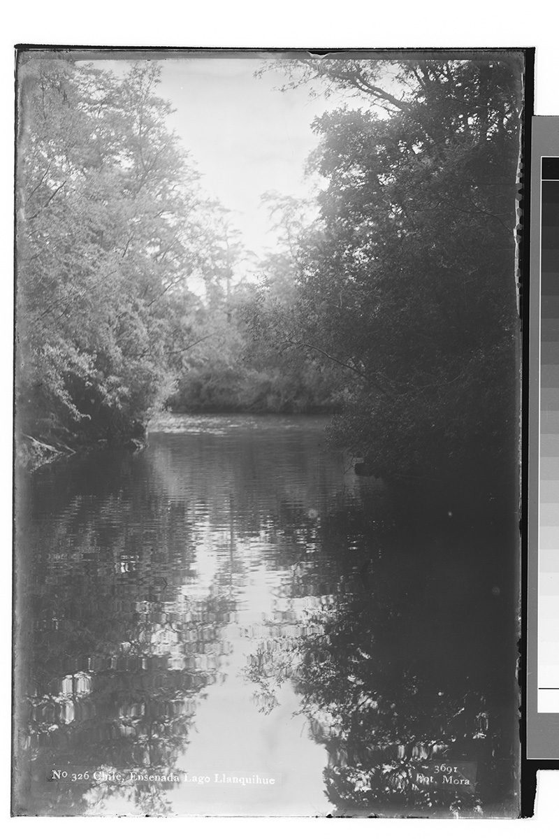 Vista de una casa de dos pisos a orilla de un lago o del mar. Sobre el mar se ven dos botes con hombres parados encimas.