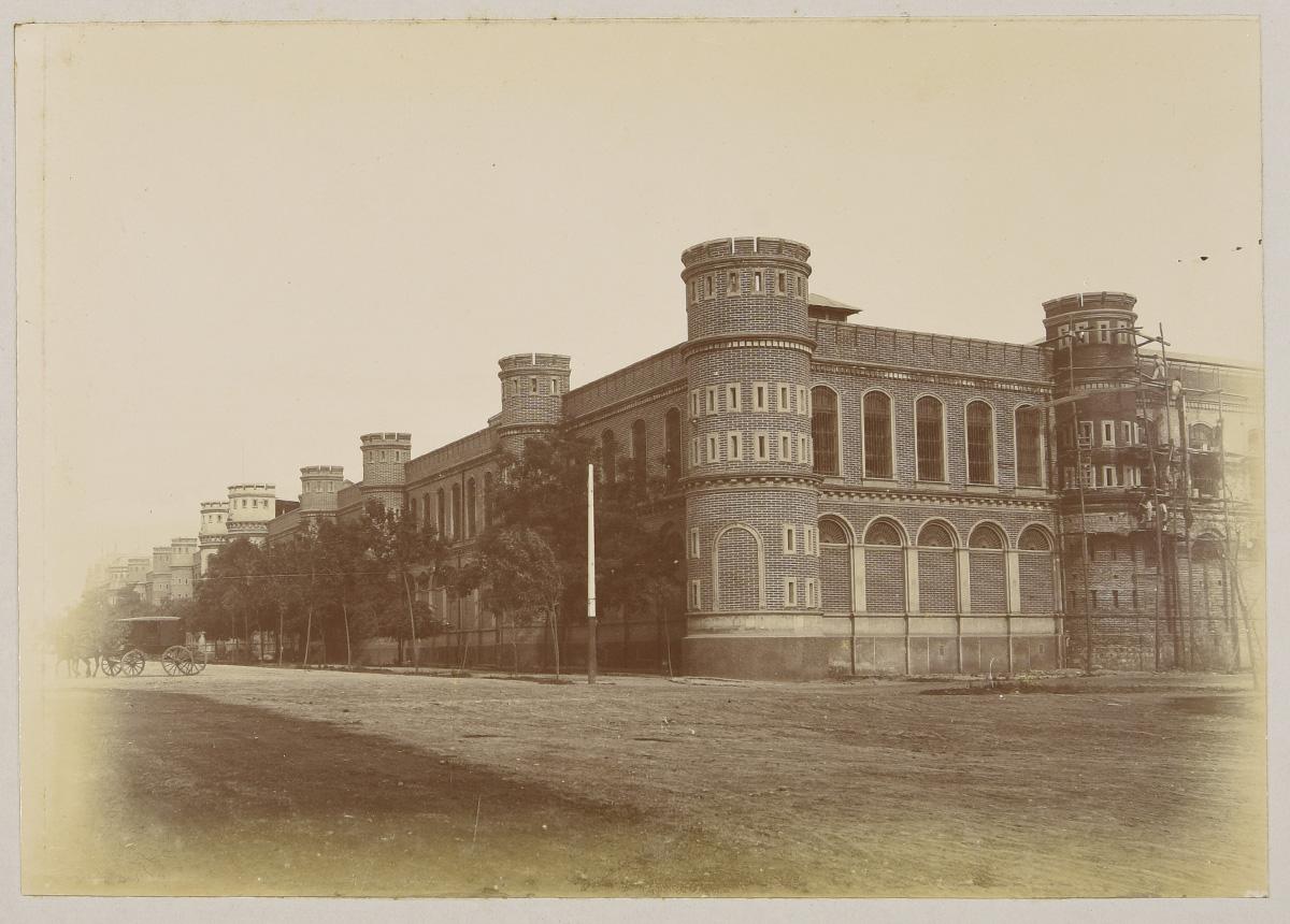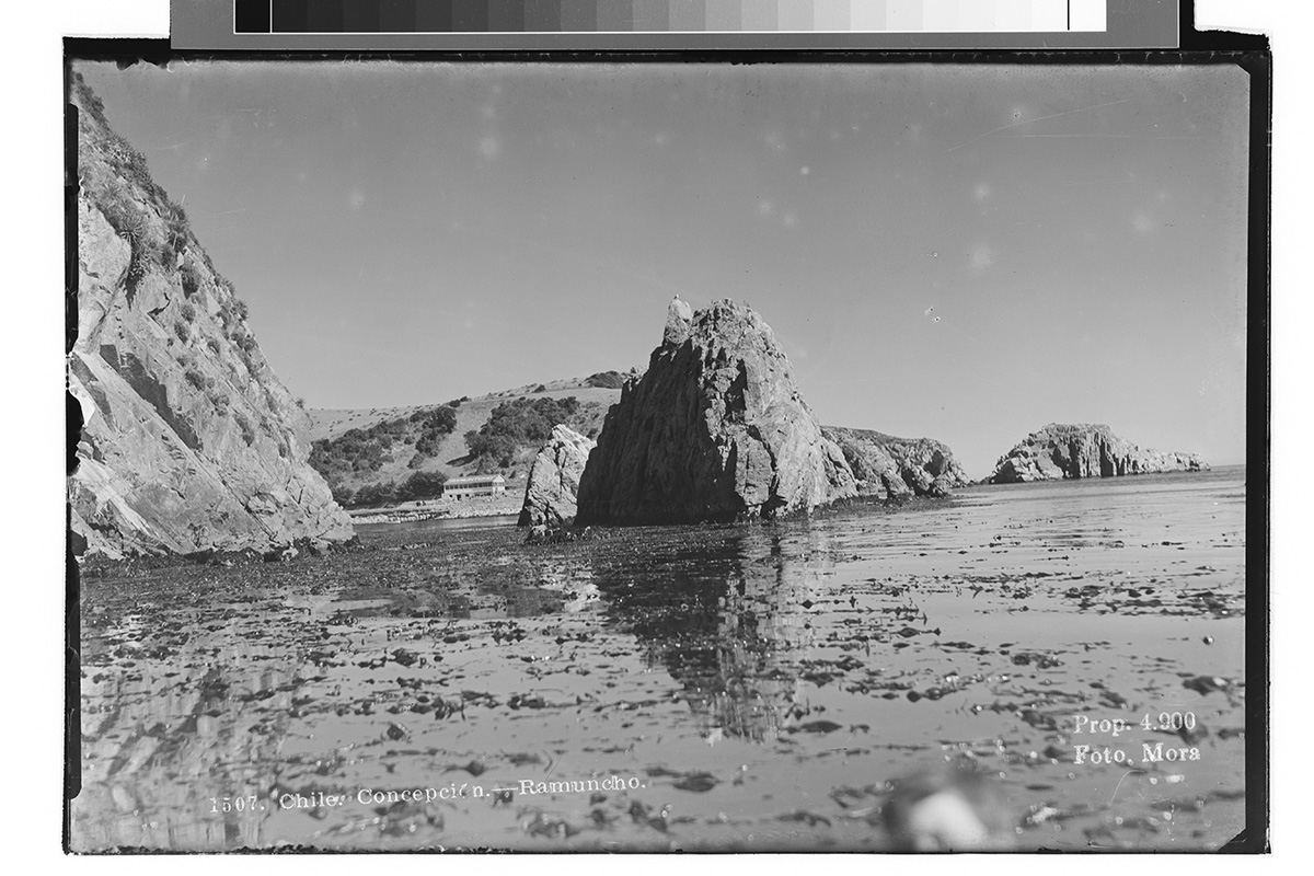 Panorámica en altura construcciones madera diferentes tamaños, puente madera y construcción tipo granero reflejados también en el Rio.