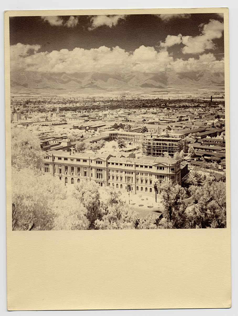 Vista de una laguna con árboles alrededor. Se distingue un cisne nadando. En segundo plano se ve un edifico blanco.