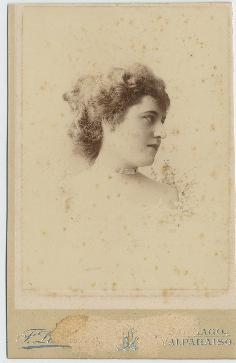 Fotografía que refleja el perfil de una mujer que está con el pelo tomado, un collar y aros.