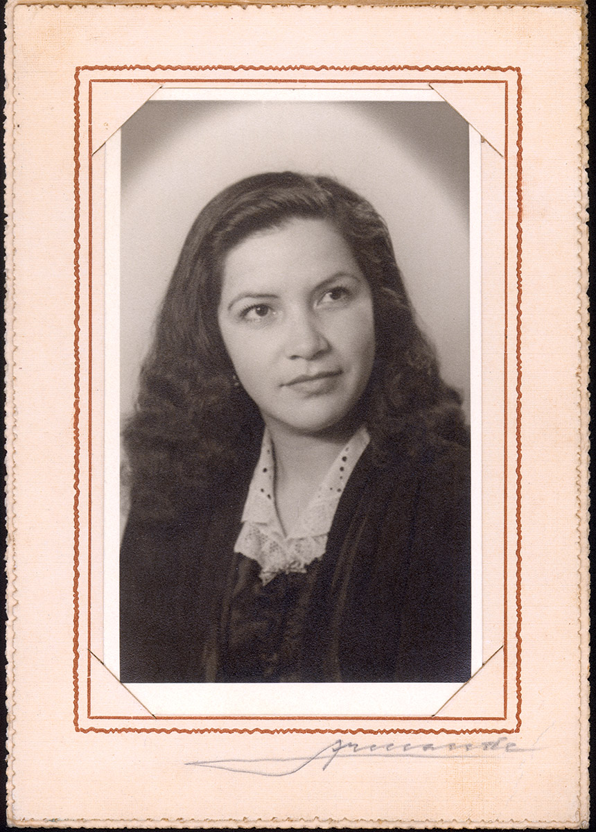 Retrato de una niña con vestido blanco y pies desnudos, sentada sobre un sillón cubierto con una piel.