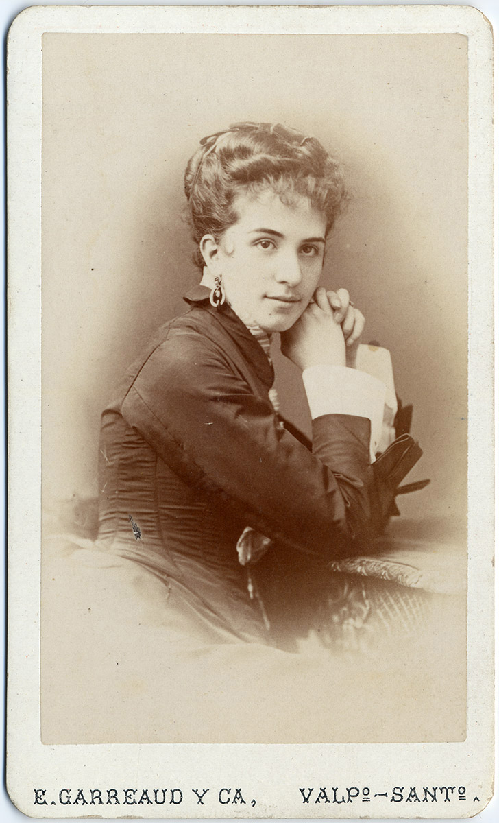 Retrato de una niña con vestido corto de cuadros sentada sobre una roca en la playa. A su lado, parado, se encuentra un niño con jardinera y polera blanca.