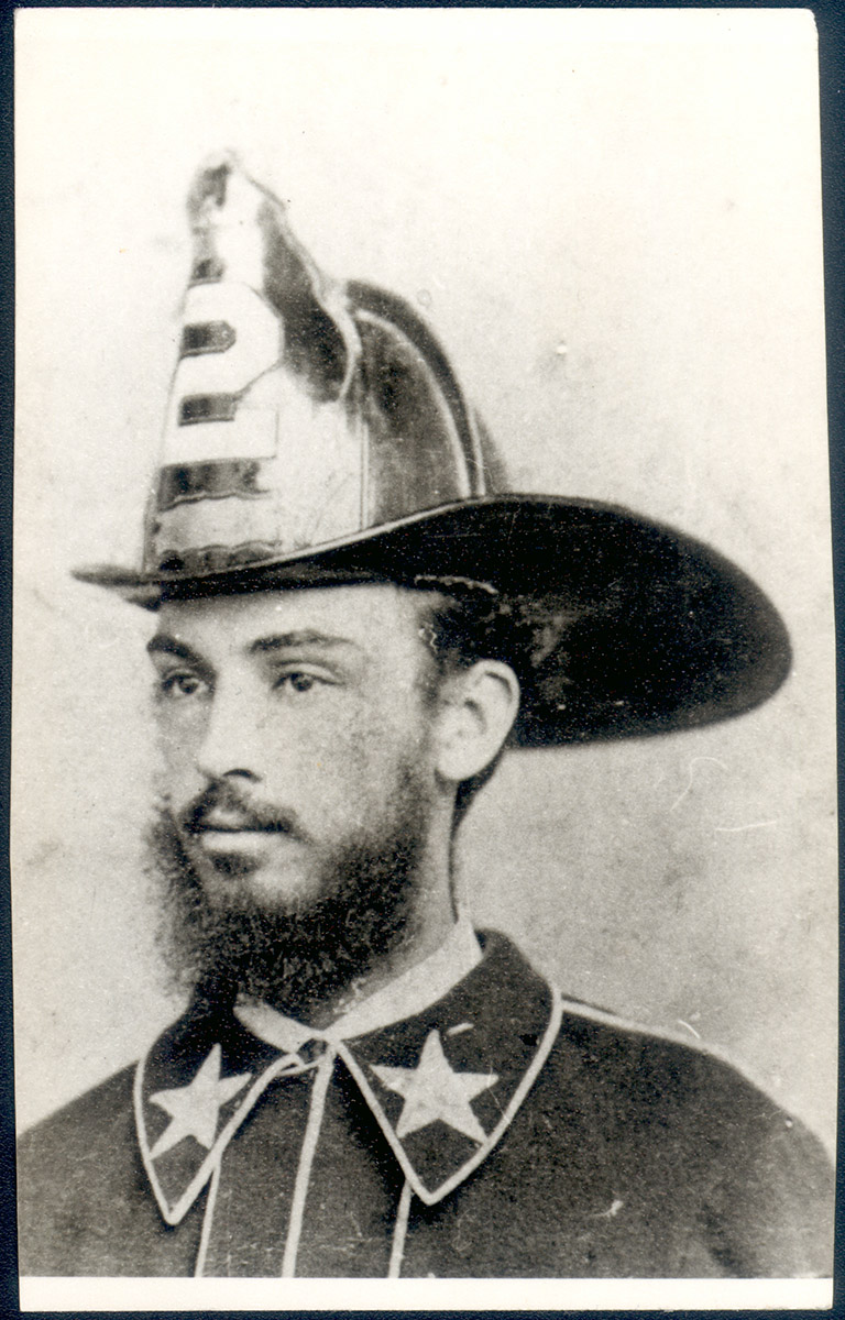 Retrato de busto de un hombre con bigote y abrigo negro. Está sentado y apoya su cabeza sobre su mano.