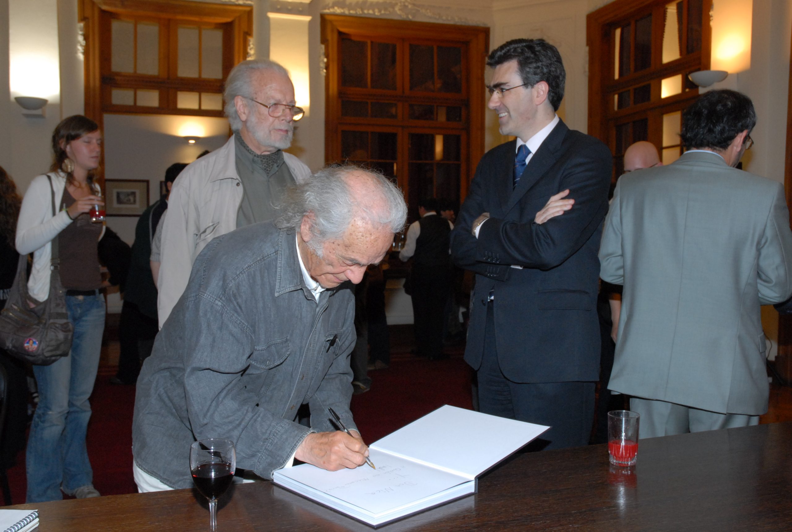 Retrato de forma ovalada de un hombre sentado con un cigarrillo en la boca. Viste un terno de color claro y lleva puesto un sombrero.