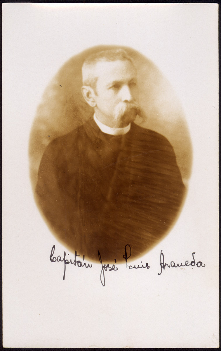 Retrato de busto de un hombre con bigote y chaqueta negra.