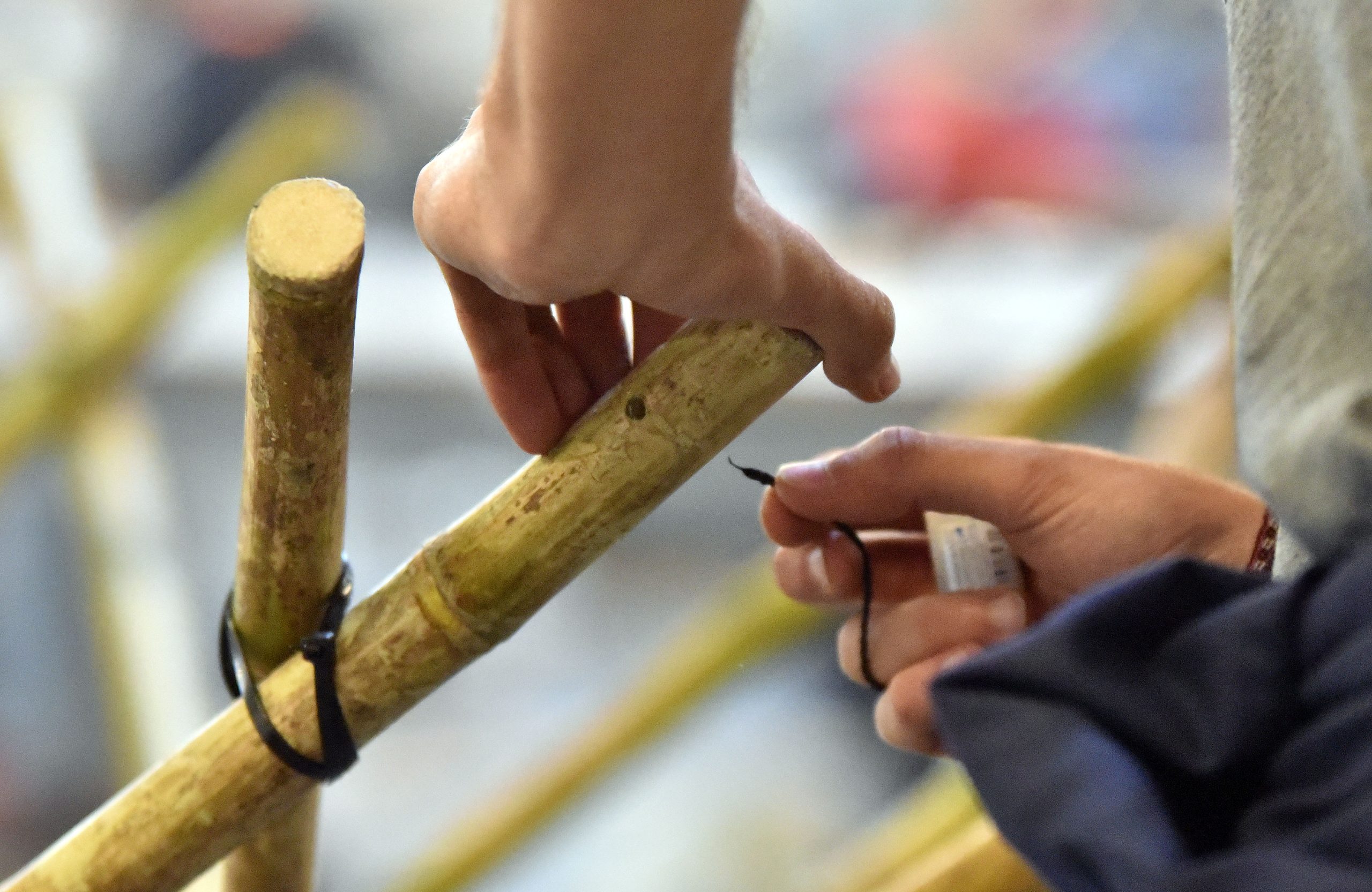 Retrato de tres hombres y una mujer. Uno, con bigote y barba, está sentado sobre un sillón con las piernas cruzadas. A la izquierda, se encuentra un hombre parado apoyando su brazo sobre un libro posado sobre un mueble. A la derecha, se encuentra una