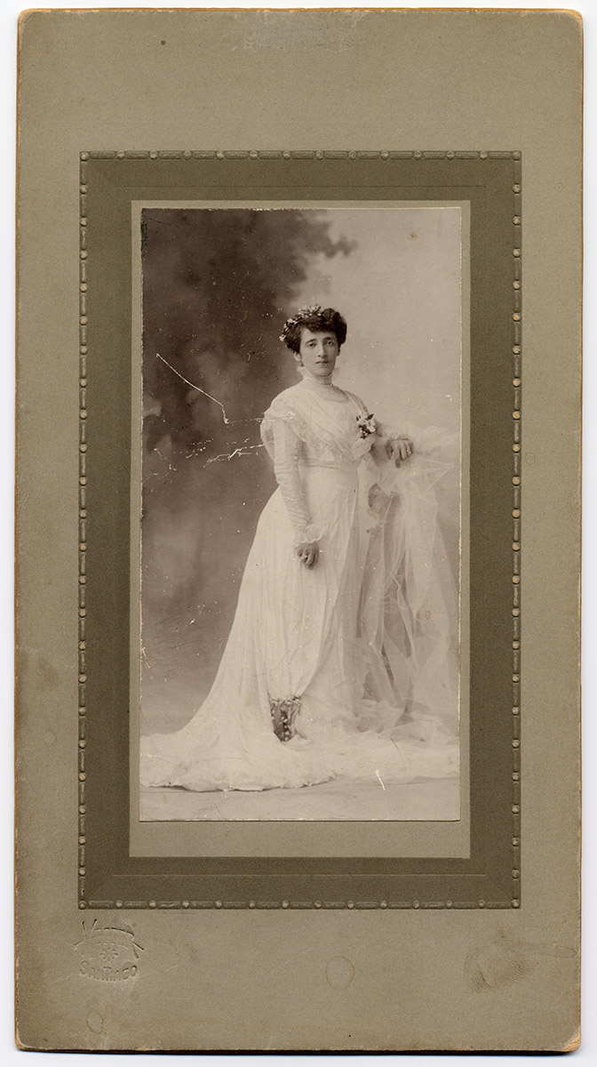 Retrato en primer plano de una mujer de perfil con pelo tomado en moño.