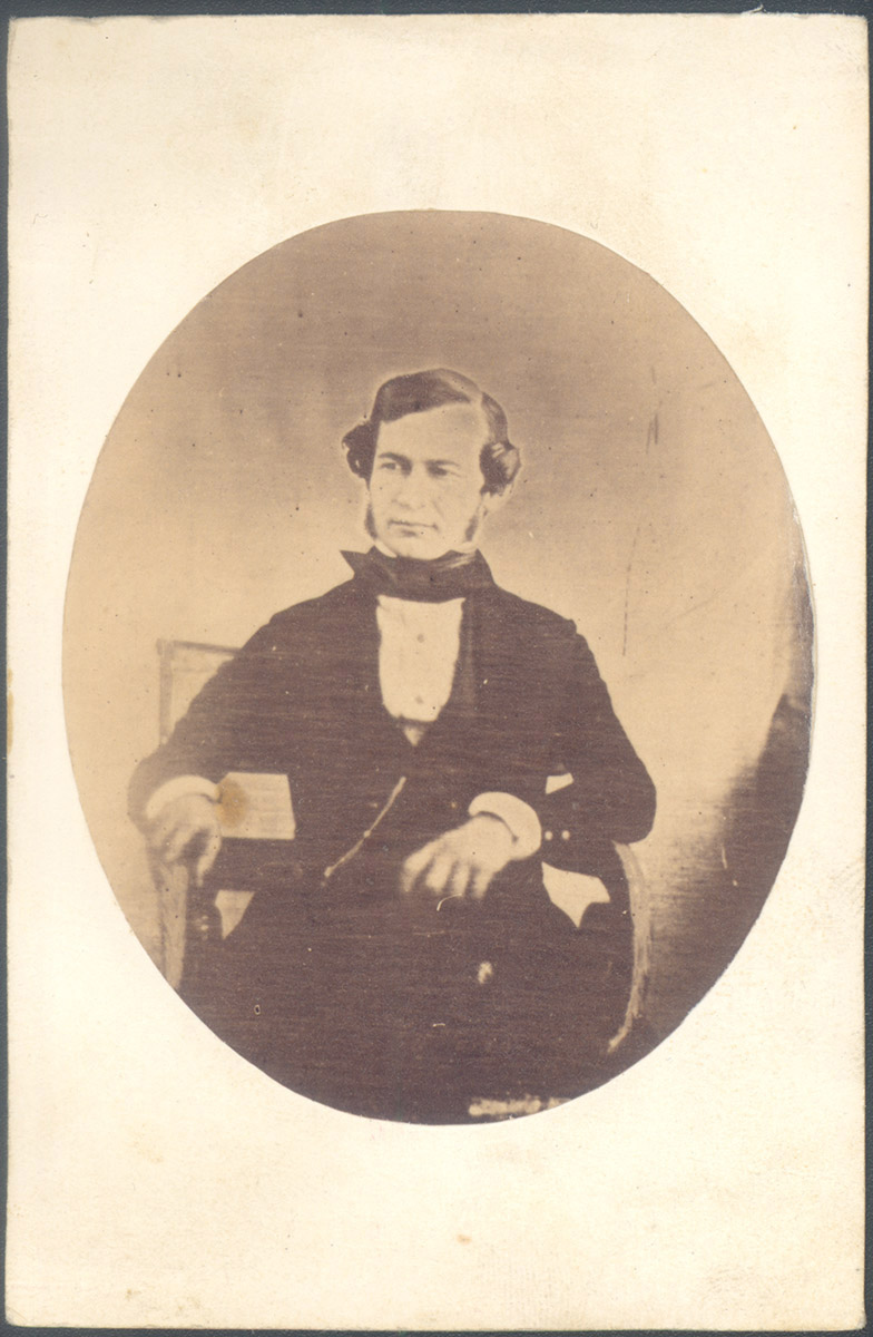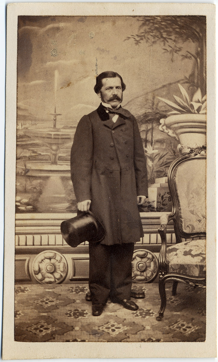 Grupo de seis hombres, tres sentados y tres de pie, todos con chaqueta y pantalón.