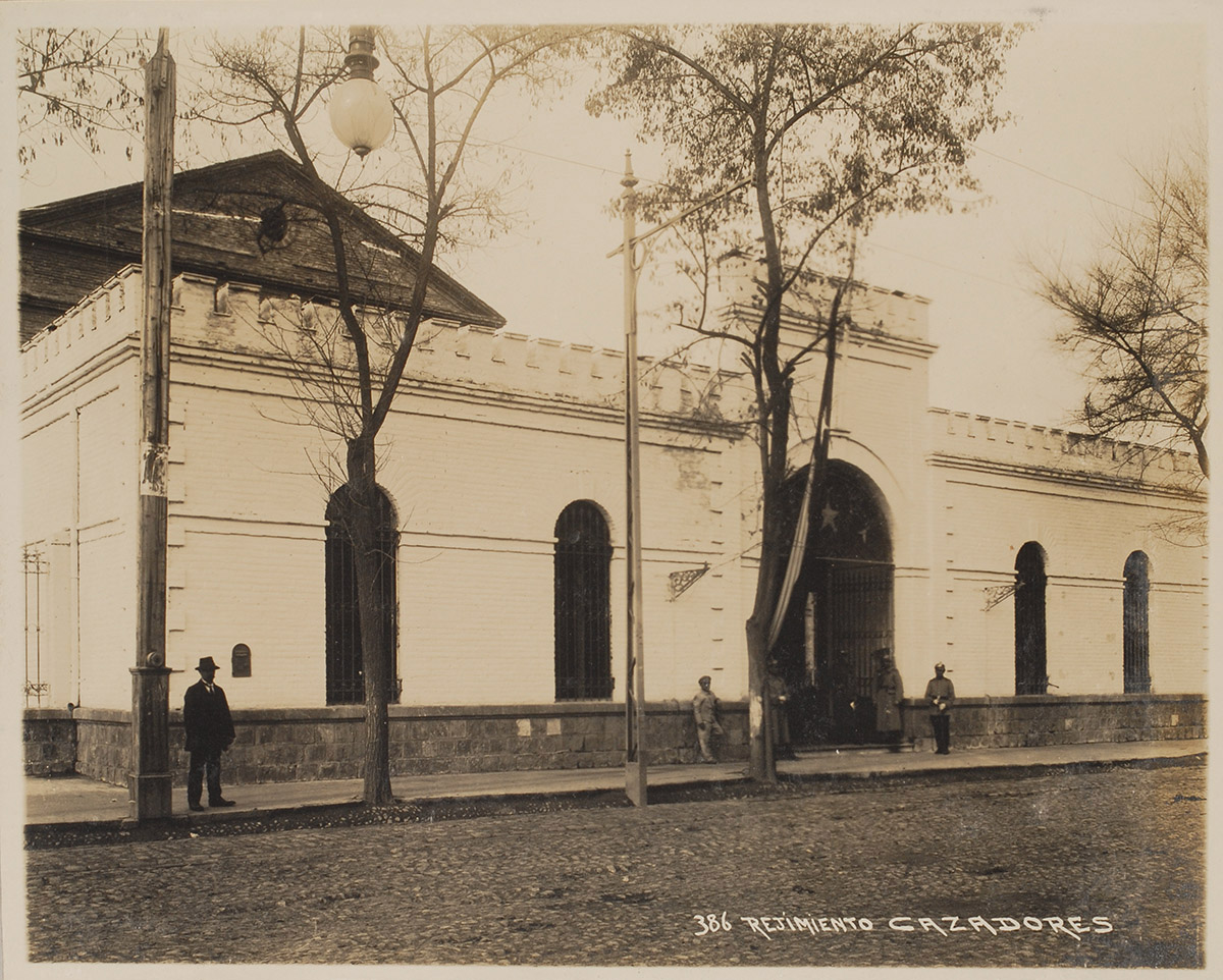 Retrato de pie de un hombre con barba. Viste un pantalón y una chaqueta negra. A su lado, posado sobre un banco de piedra se encuentra un sombrero redondo negro.