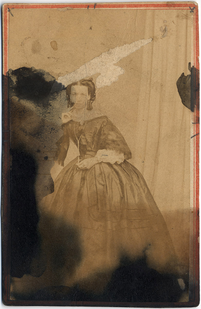 Retrato de un niño con traje escoses y sombrero, sentada sobre un sillón. Está un poca borrosa.