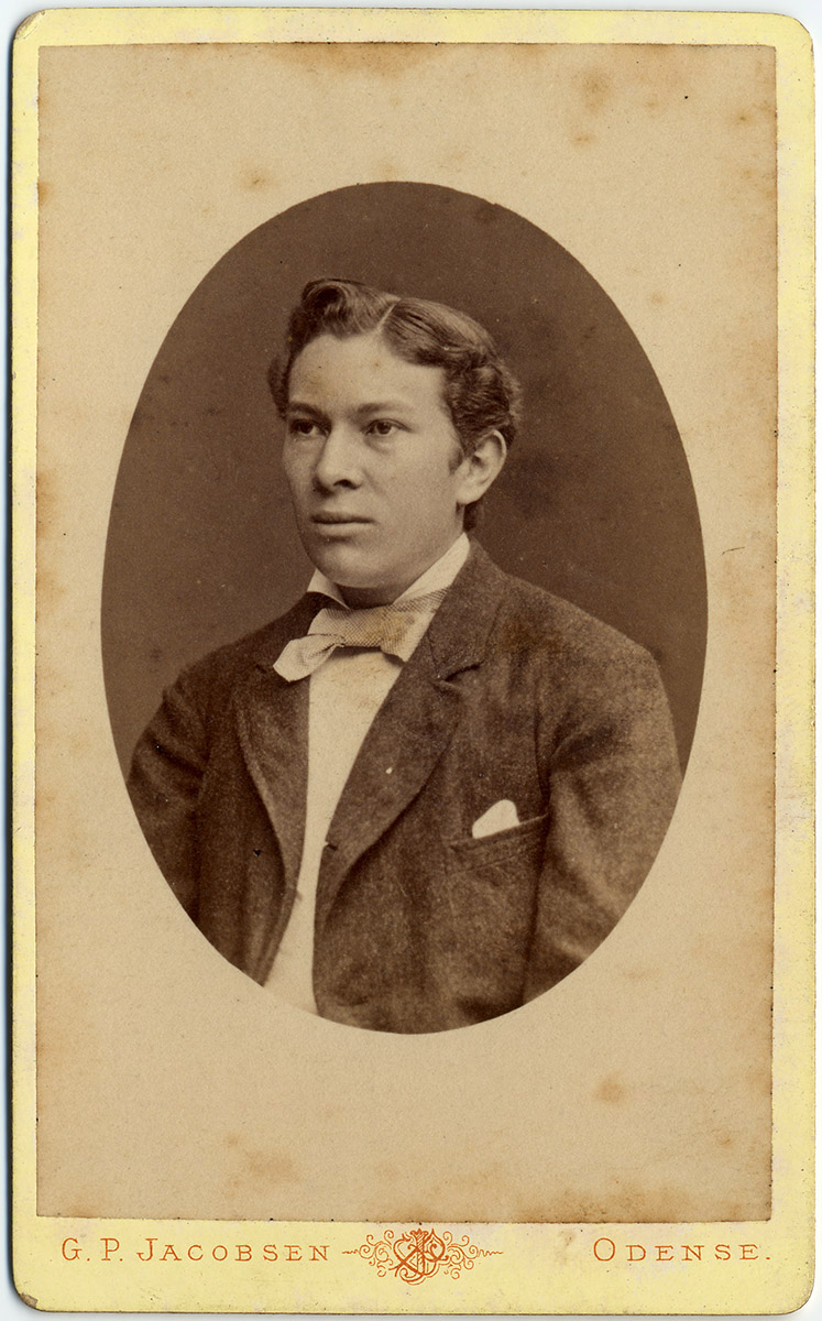 Retrato de busto y de forma ovalada de una mujer con pelo recogido y vestido de color claro. Apoya su brazo sobre un pilar. La ornamentación de su peinado fue coloreada en verde.