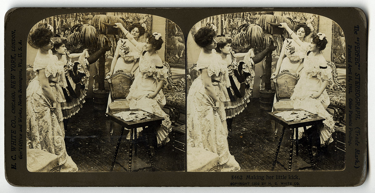 Retrato de una niña con vestido blanco ancho de pie sobre una silla. Una de sus manos está apoyada sobre su estomago, mientras la otra reposa sobre el respaldo de un sillón.