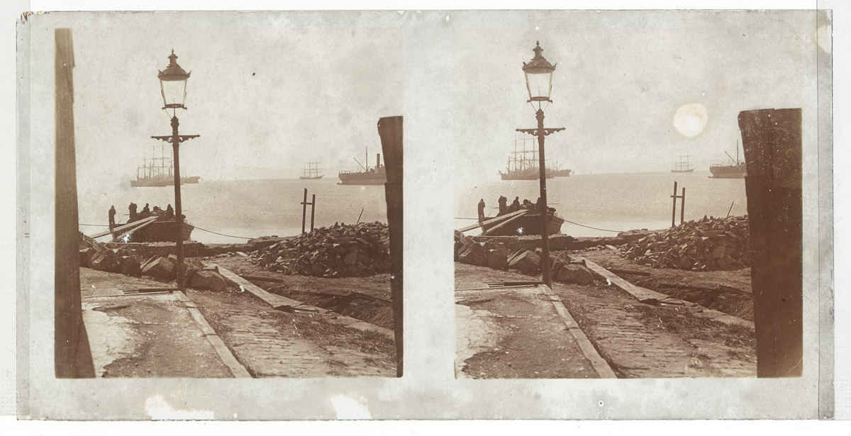 Vista del patio de una casa con una mesa, utensilios, vegetación y gansos caminando.