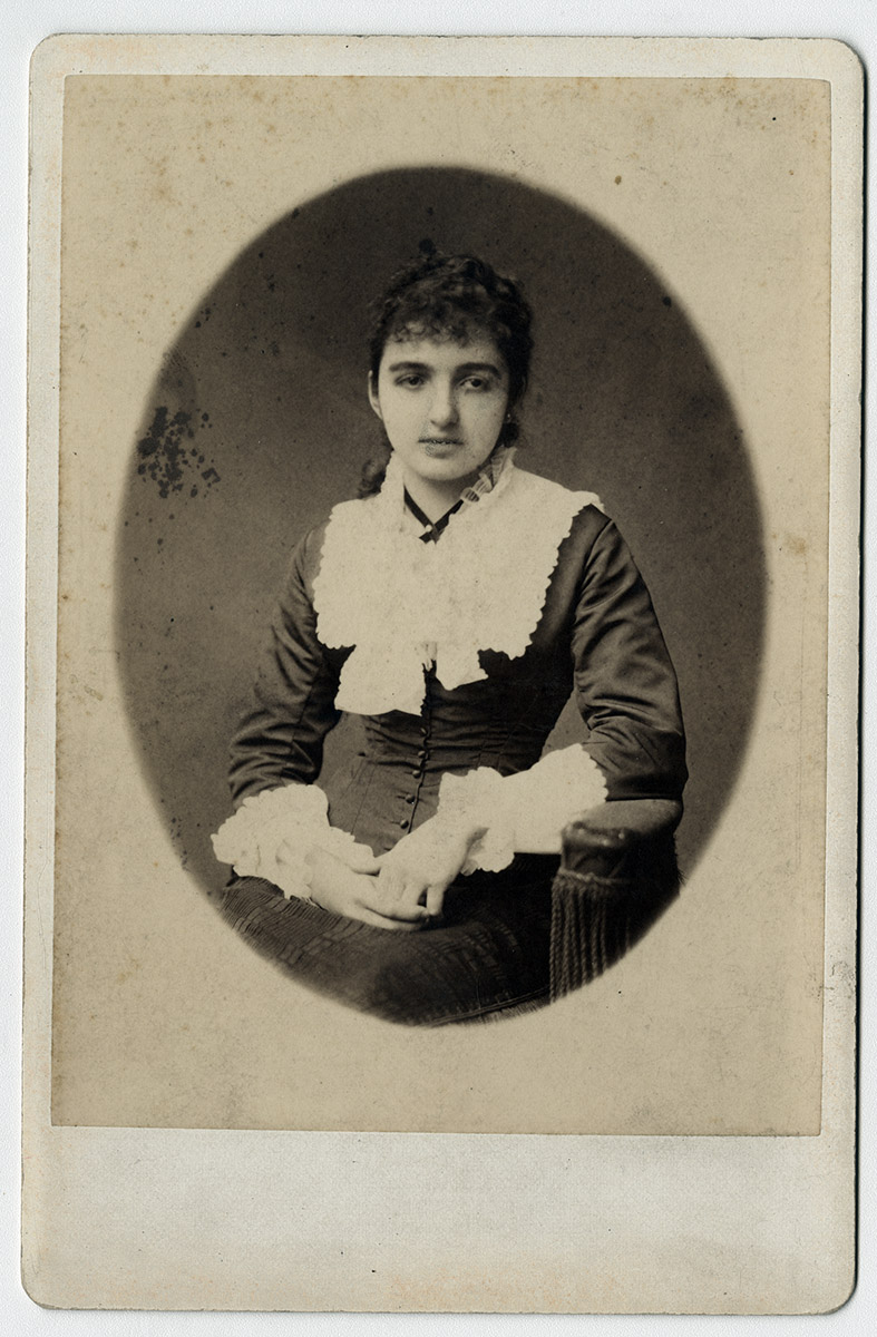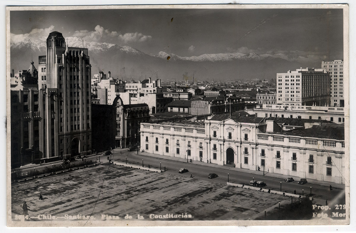 Una bailarina de vestido claro y corto se encuentra sobre un escenario con un pandero en su mano izquierda. En el fondo, al costado izquierdo, unos hombres se encuentran sentado y al costado derecho se encuentra el público también sentado.