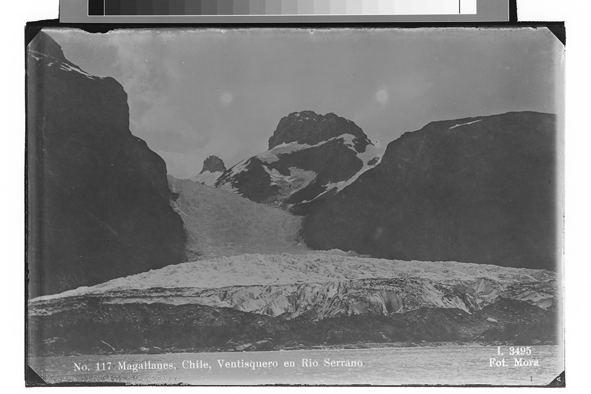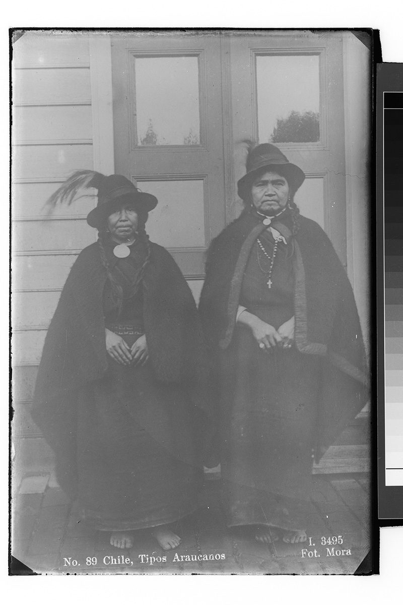 Se ve a un grupo de cuatro personas en torno a un asado al palo en el campo. Un mujer con delantal está esperando la carne con un plato en las manos, mientras las otras tres personas ayudan en la labor.