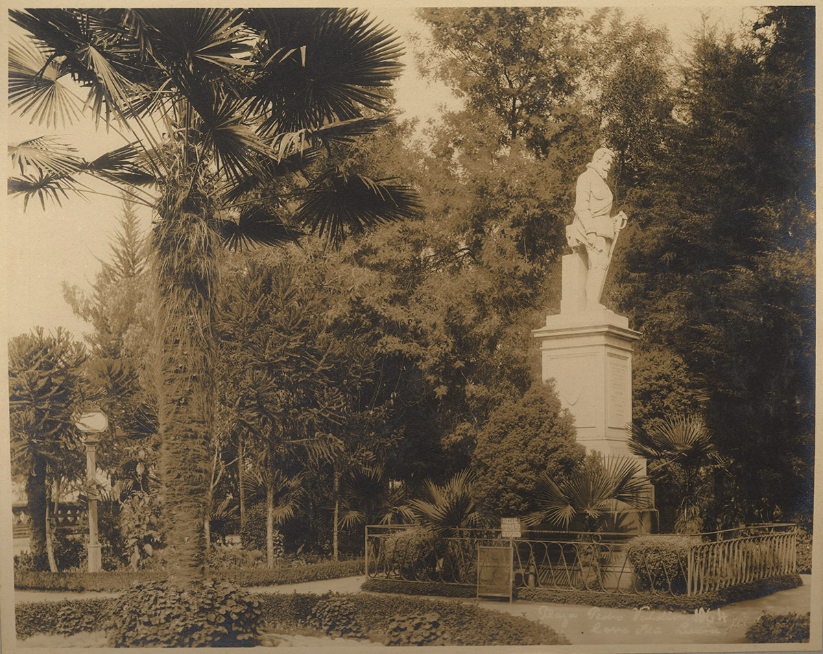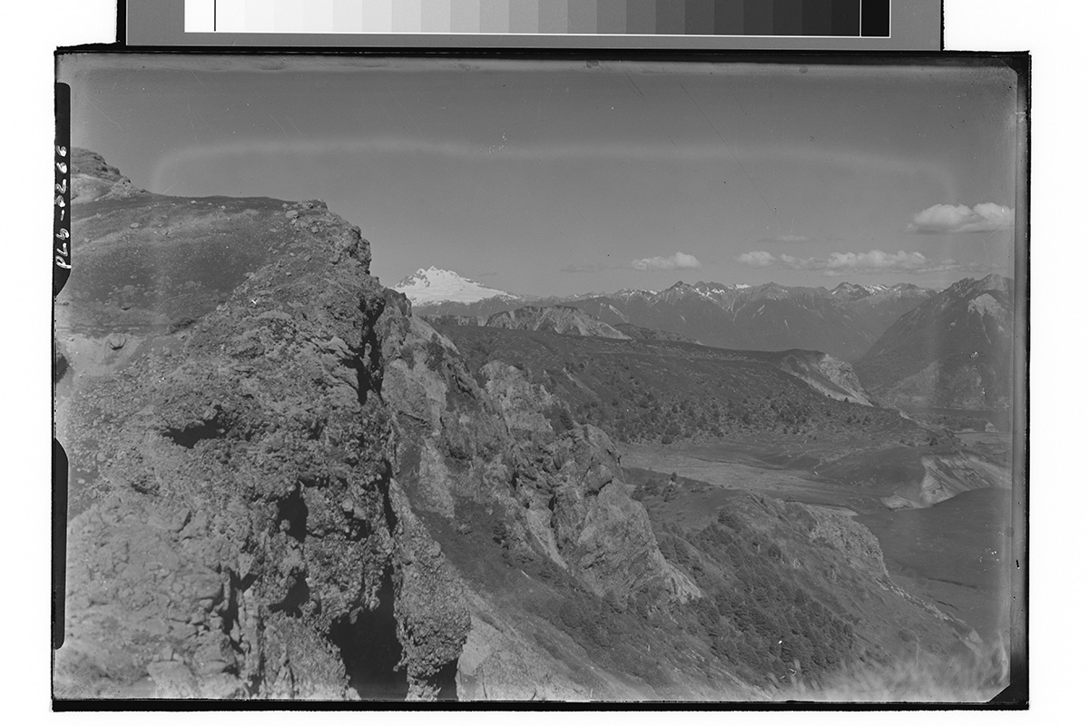 Vista hacia varios roqueríos que se encuentran junto al mar. En el centro de la fotografía se encuentra un gran edificio construido sobre la roca.