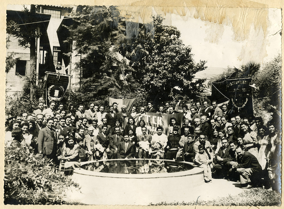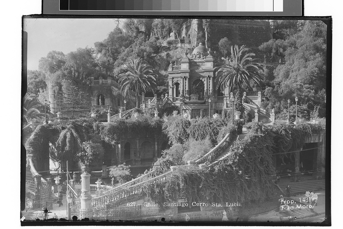 Dos casas unidas se encuentra rodeada de jardines. De fondo, al costado derecho de la fotografía, se ve la ladera de un cerro.