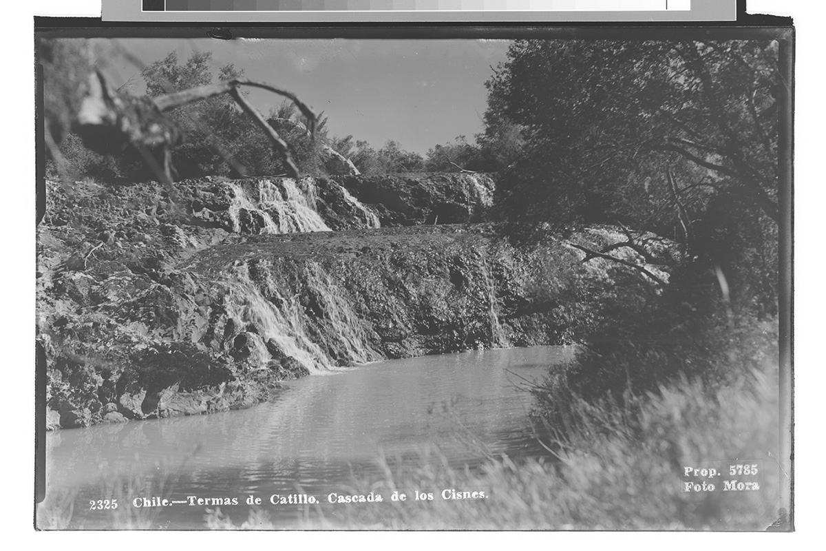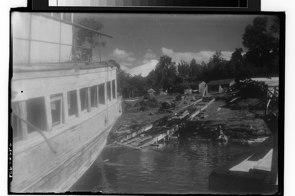 Un lago rodeado de cerros cubiertos de bosque nativo o nieve en sus cimas.