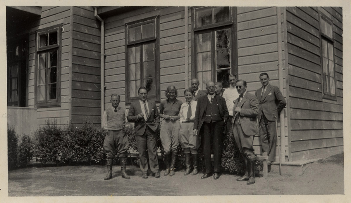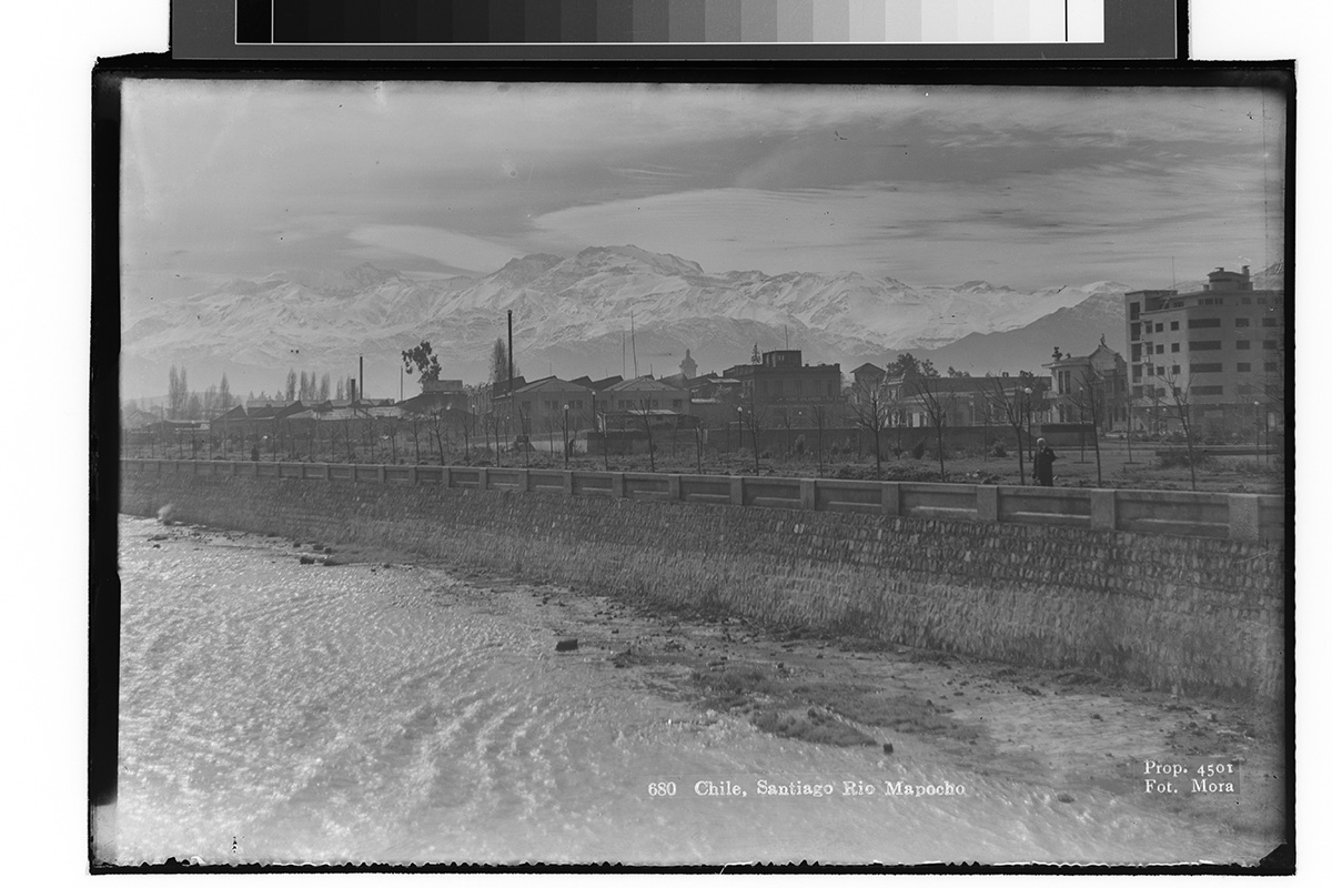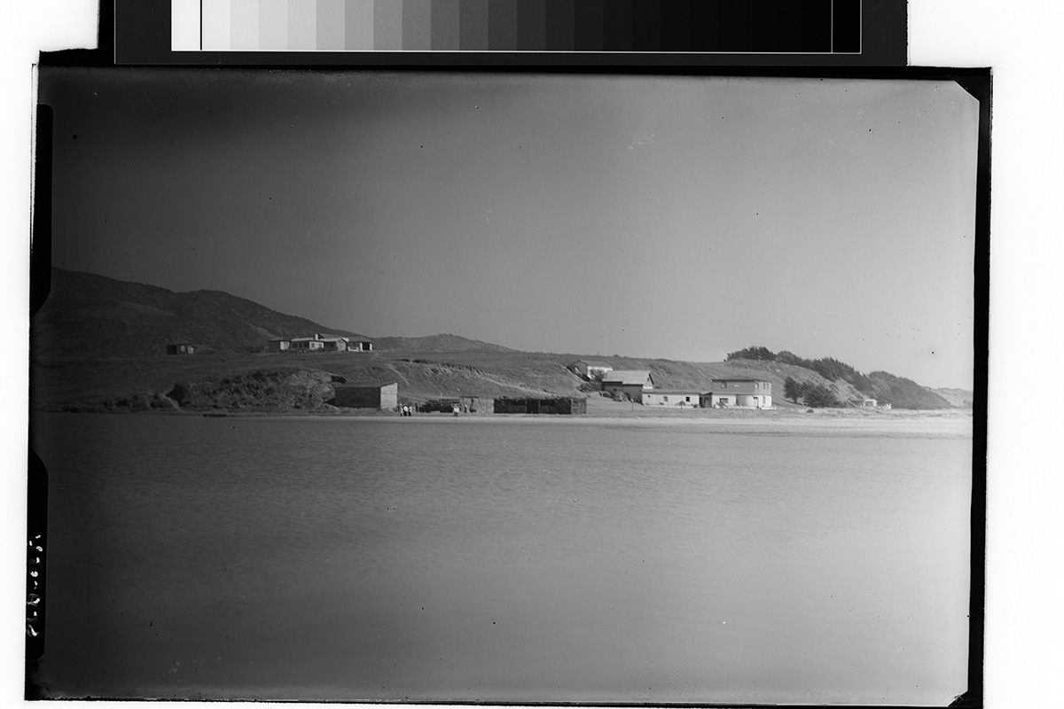 Vista de una ancha calle de tierra. Al costado izquierdo de la fotografía, dos hombres y un niño se encuentran en el acceso amurallado. Al costado derecho, rejas de madera y Vegetación dividen propiedades.