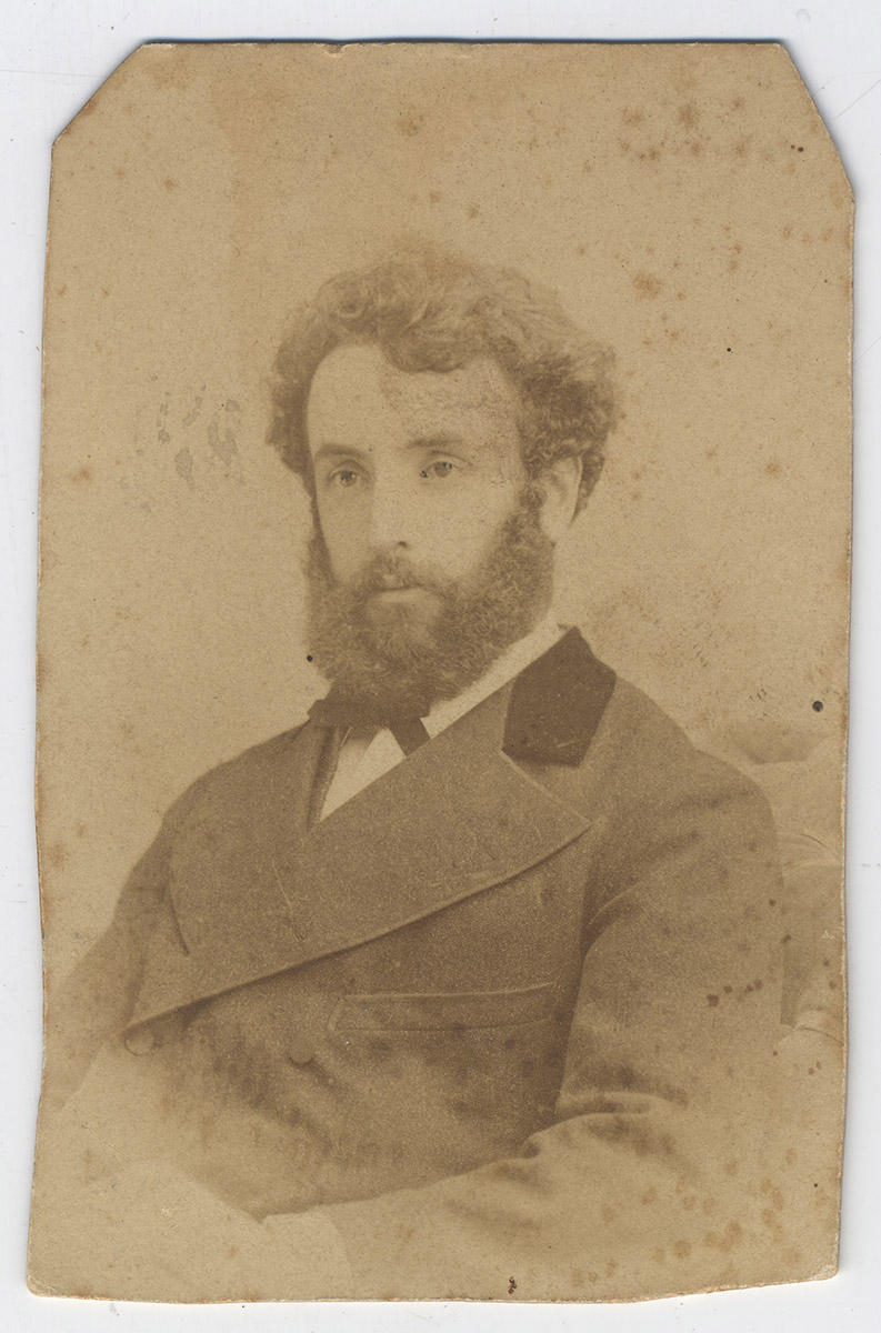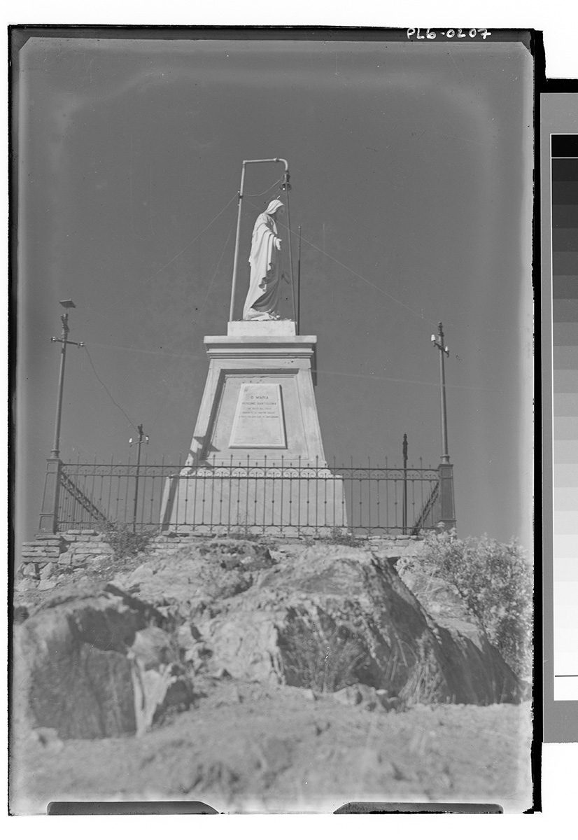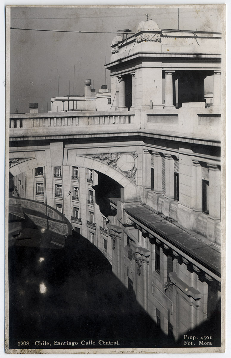 Edificio de dos niveles con torreones que ocupa un importante espacio, delimitadas por palmeras junto a una avenida donde transita el tranvía.