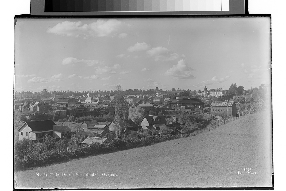 Un edificio de ladrillo con una torre, parecida a un castillo, se encuentra a un costado de un camino de tierra en subida. Detrás de la construcción de ladrillo se distinta unas líneas férreas se elevan por la ladera de un cerro.