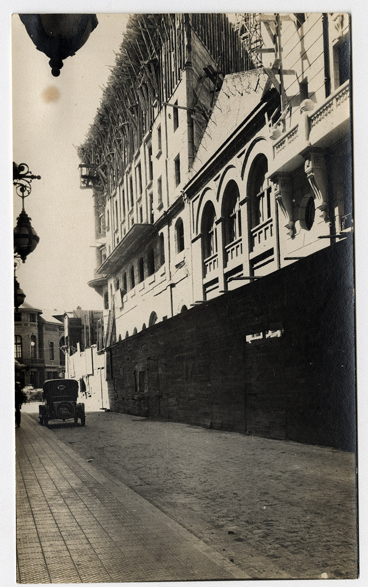 Vista de una ciudad con gran cantidad de edificios de todo tipo y tamaños. De fondo, un cerro y parte de una cordillera nevada.