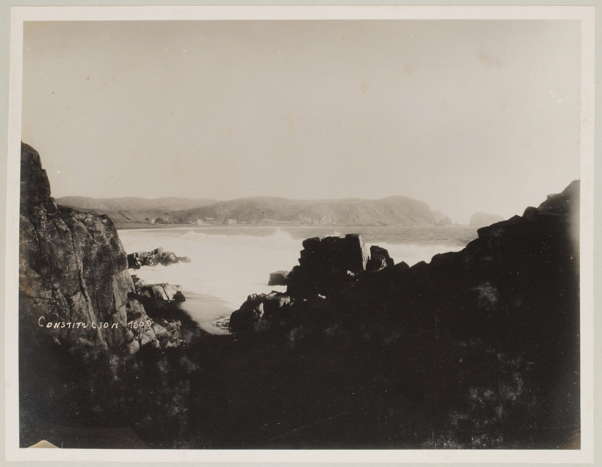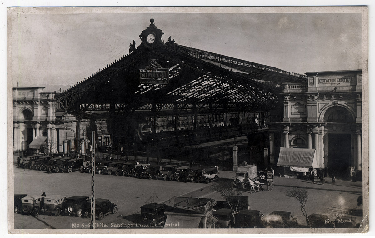 La postal muestra una imagen parcial de un cerro con sus caminos de acceso, una escultura de la Virgen María en su cima y rodeado de una gran ciudad.