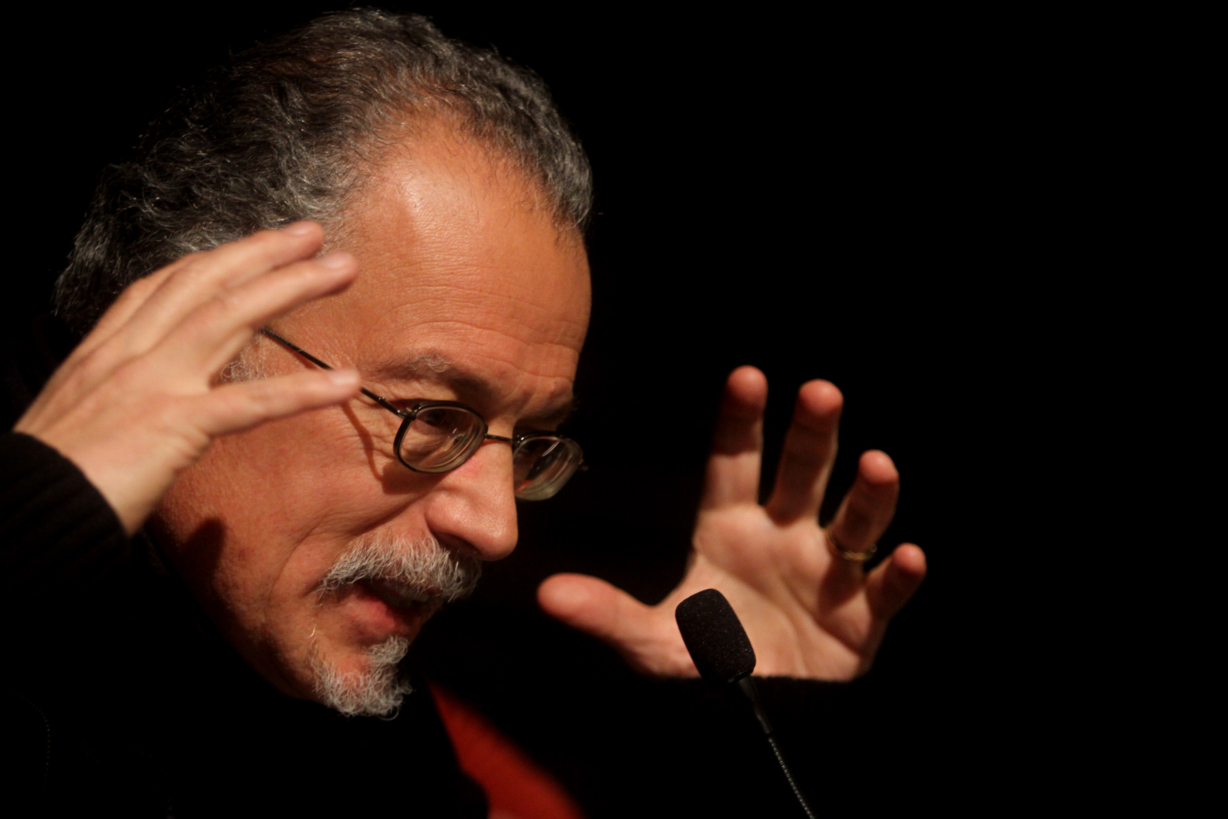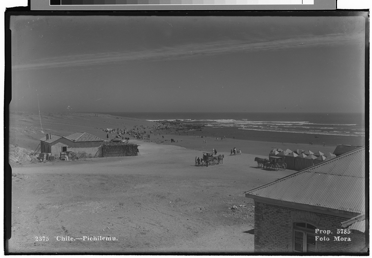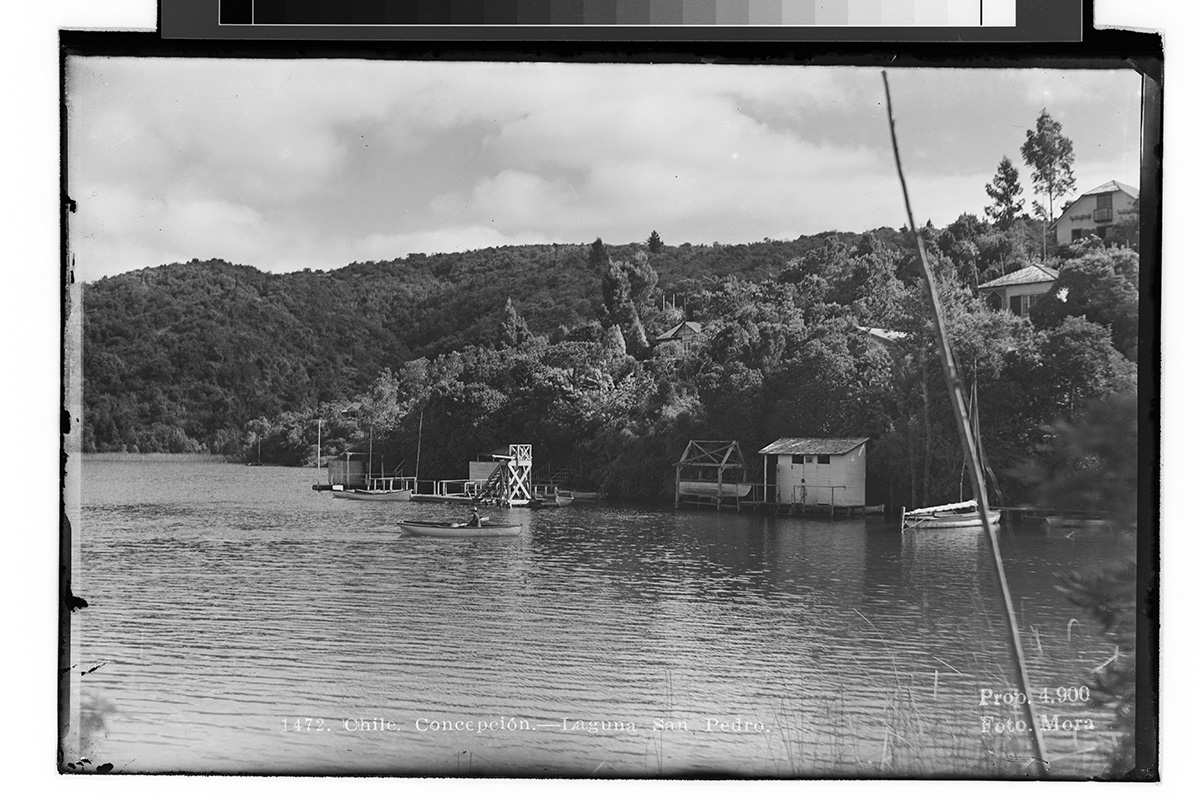 Vista del volcán Osorno desde la orilla del río, orilla con grandes piedras rodeado de altos árboles y movidas aguas.