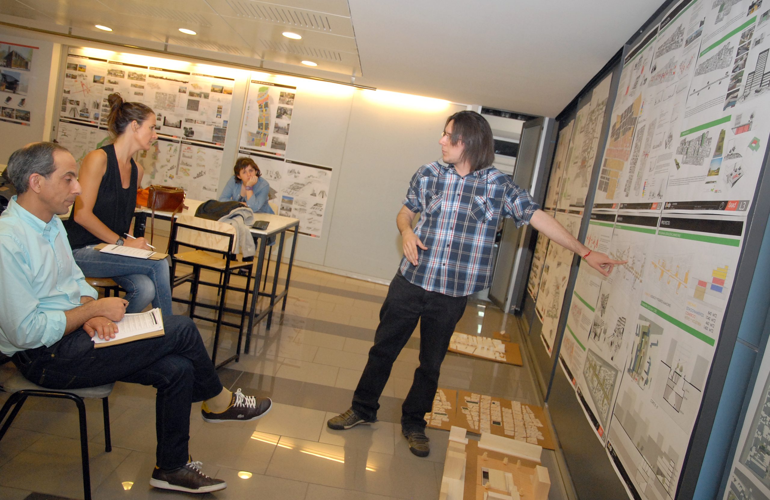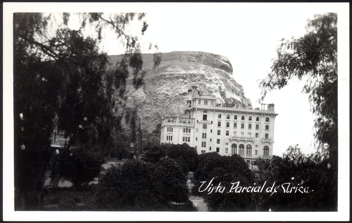 Dibujo que contiene varios edificios, donde se distingue en el fondo una iglesia.