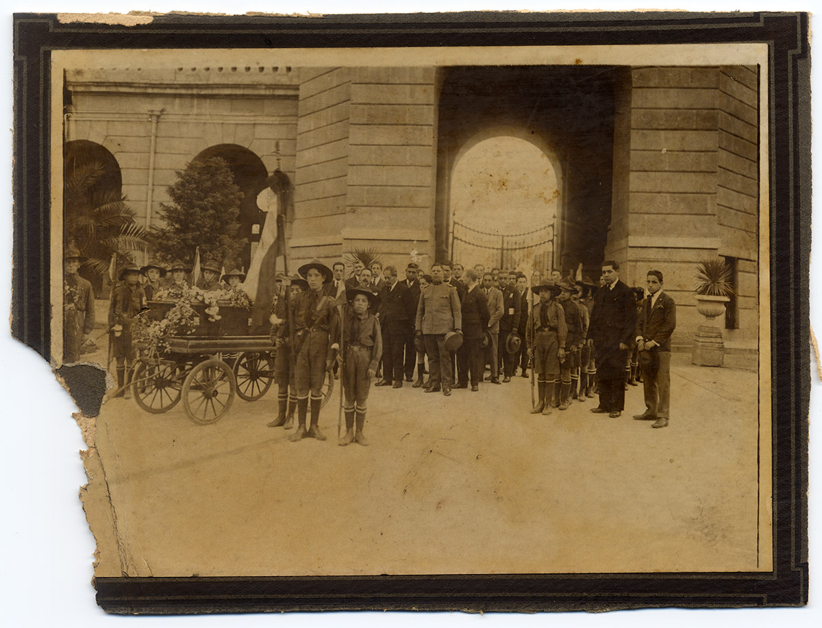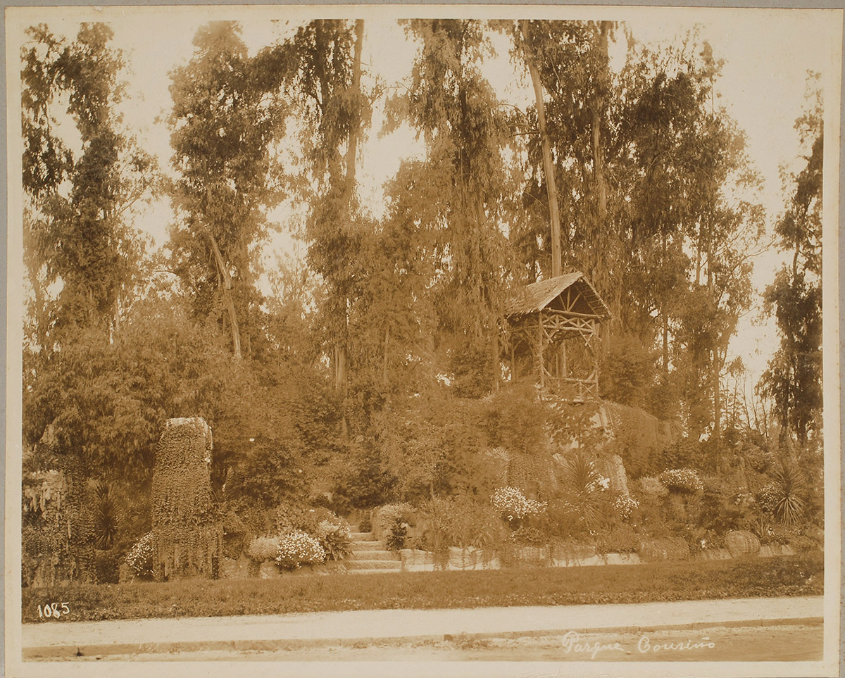 Retrato de dos niños de pie sobre un puente de madera en un parque.