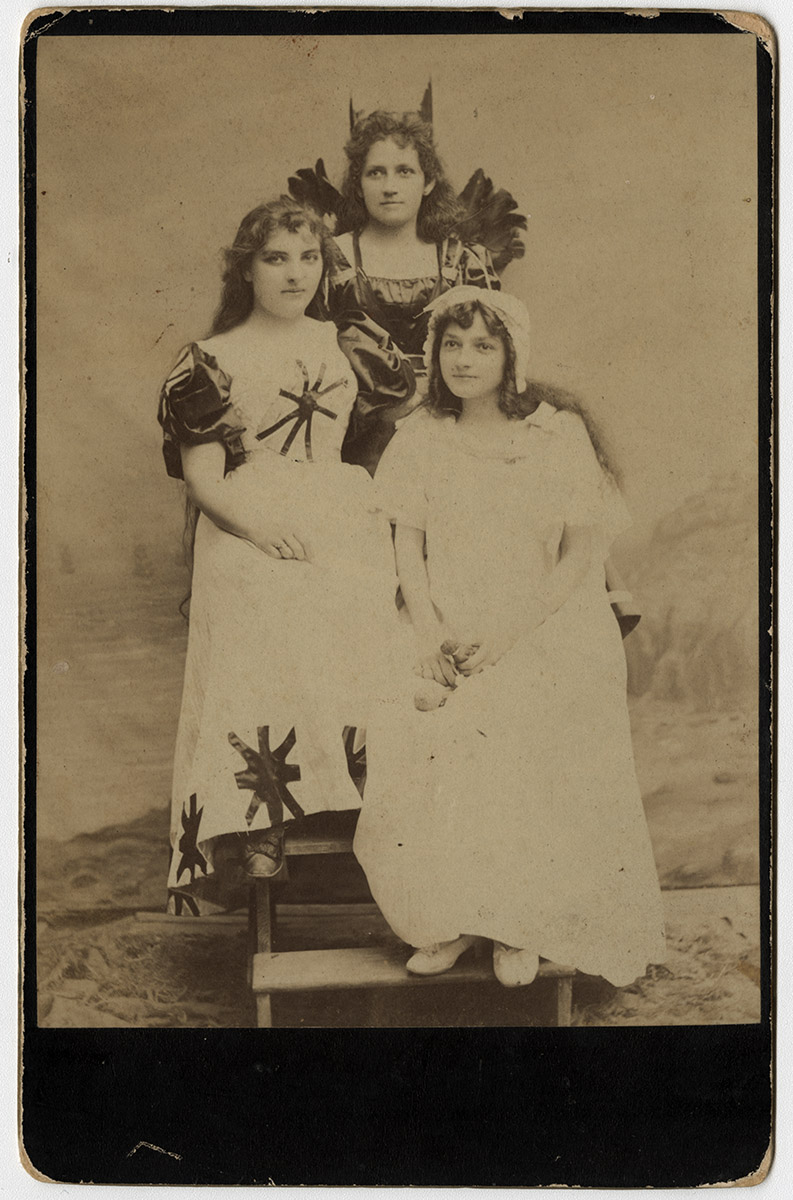 Grupo familiar compuesto por 2 hombres, 3 mujeres y un niño están sentados sobre un muero bajo. Al lado del grupo, apoyado sobre el muro, se ve un par de muletas.