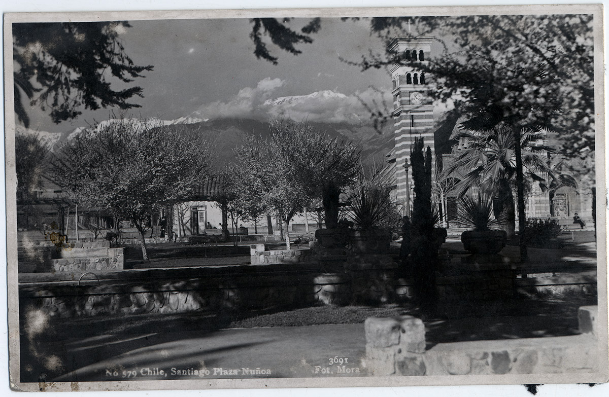 Hombre con sombrero de paja sentado sobre un banco en un parque. Atrás se ven árboles y un kiosco.