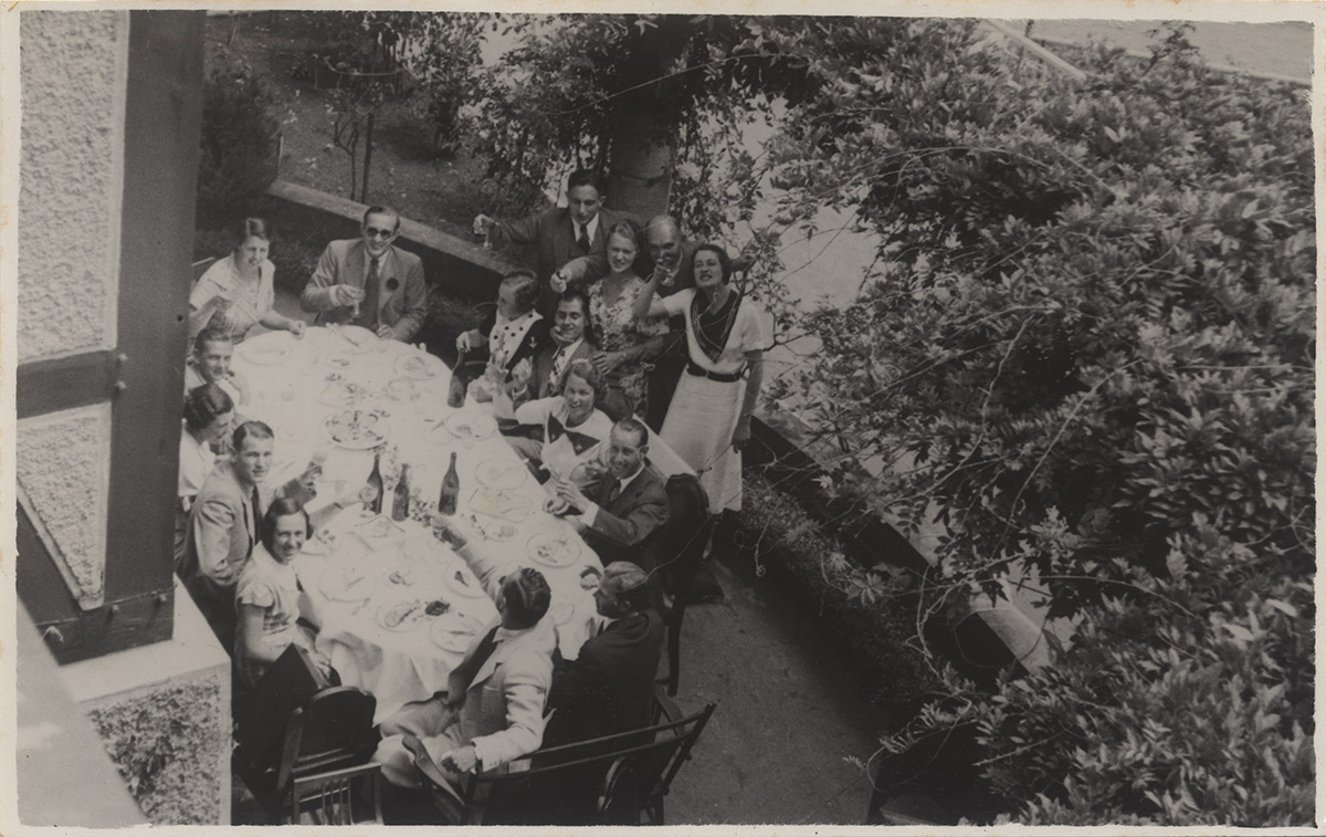 Vista de una iglesia con una torre a un lado y arboles delante.